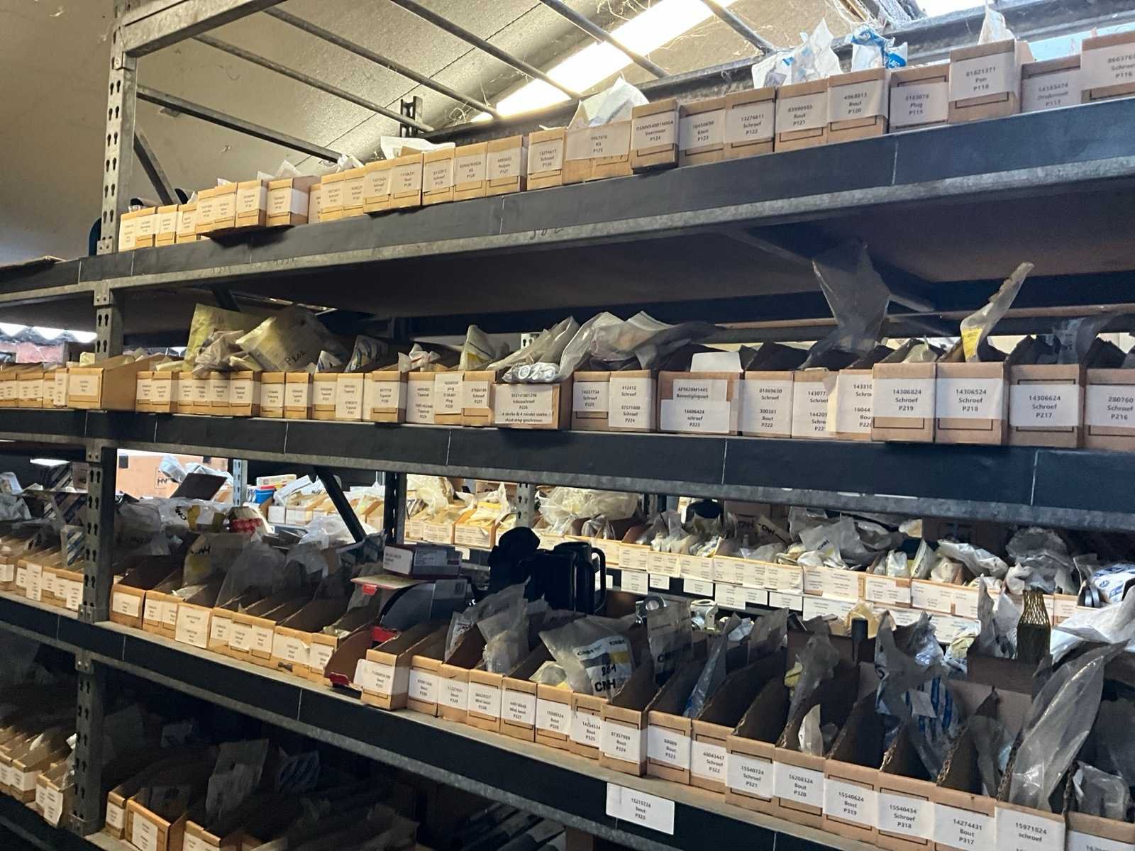 Bestaand uit inhoud deel 1+2 van rek met 12 secties (ENKEL LINKER KANT) bestaande uit diverse wielbouten en moeren, rondellen, originele bouten en moeten diverse toepassingen, enz.. Nee Merk: New Holland