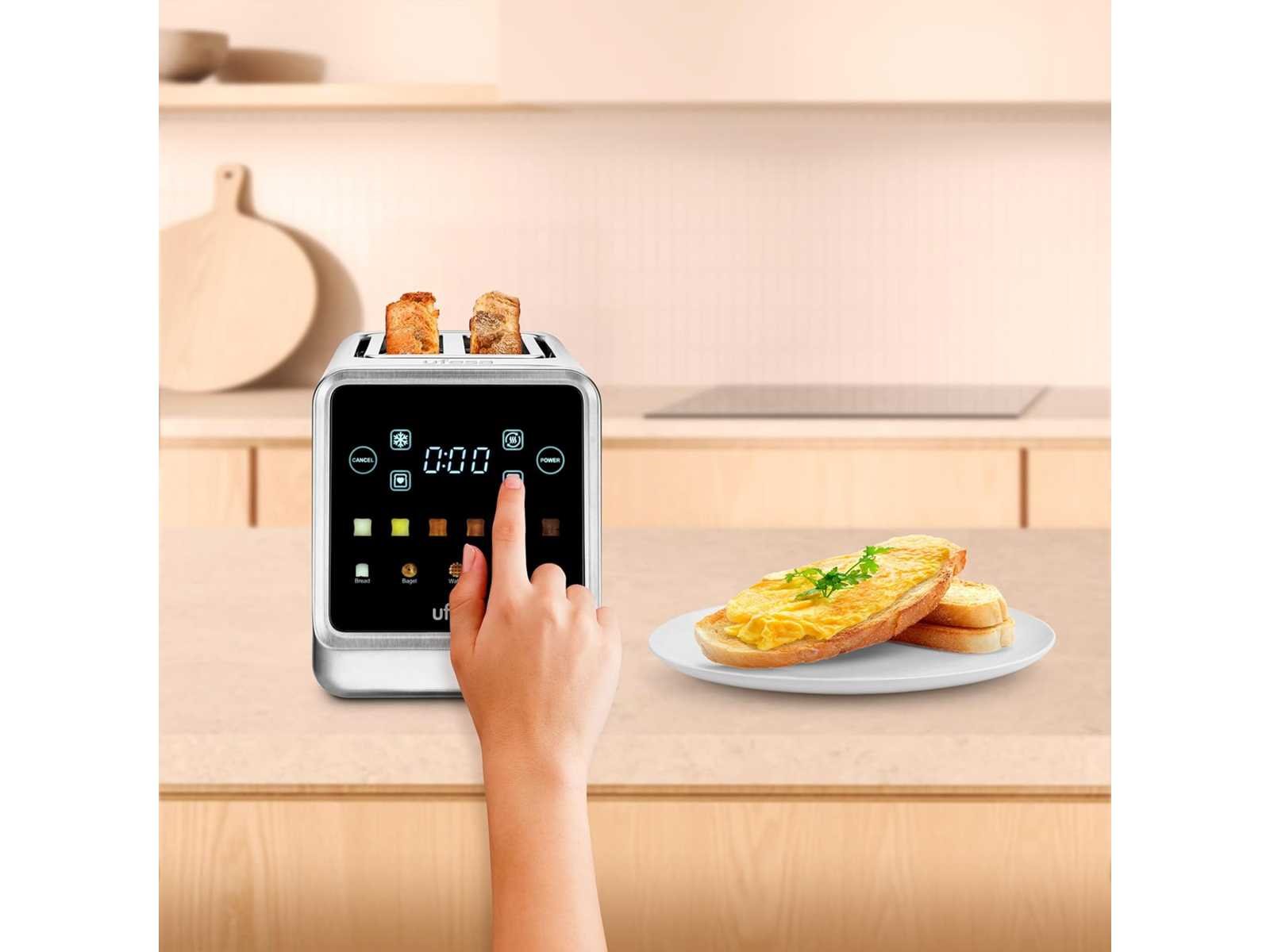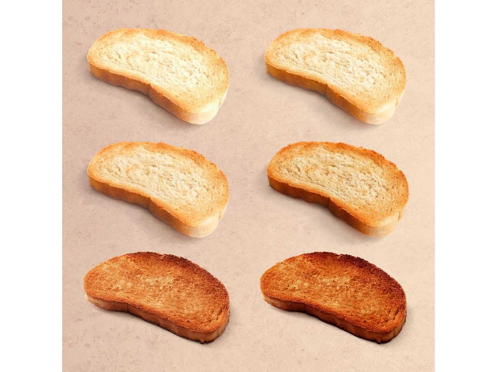 Veelzijdig en ultrakrachtig. Deze 1.400W roestvrijstalen broodrooster is ideaal voor snelle, gelijkmatige bruining. Dankzij de 6 polijstniveaus kun je het resultaat aanpassen naar eigen voorkeur. Hij is uitgerust met een timer met LED-display voor meer precisie. LED-DISPLAY MET GRILLMODI. Het LED-display toont continu de resterende roostertijd. Kies uit 5 vooraf ingestelde modi, afhankelijk van het soort brood: brood, bagel, Engelse muffin, wafel en gebak, waarbij de temperatuur wordt aangepast aan elke textuur. GEAVANCEERDE DAGELIJKSE FUNCTIES. Uitgerust met 6 functietoetsen (Verwarmen, Ontdooien, Individueel, Geheugen, Annuleren en Starten) biedt dit apparaat je een persoonlijk en efficiënt gebruik. De Geheugenfunctie slaat je favoriete instellingen op voor een sneller ontbijt. EXTRA BREDE SLEUVEN EN EEN ZELFCENTREREND SYSTEEM. De 2 extra grote sleuven maken het mogelijk om moeiteloos dikke plakken zoals gebak te roosteren, dankzij het zelfcentrerende systeem dat zorgt voor gelijkmatige roostering aan beide kanten. EENVOUDIG SCHOONMAKEN EN OPBERGEN. Uitgerust met een afneembare kruimelbakje voor eenvoudige schoonmaak. Bovendien is er kabelopslag, ideaal voor een nette keuken en minimale rommel. Non