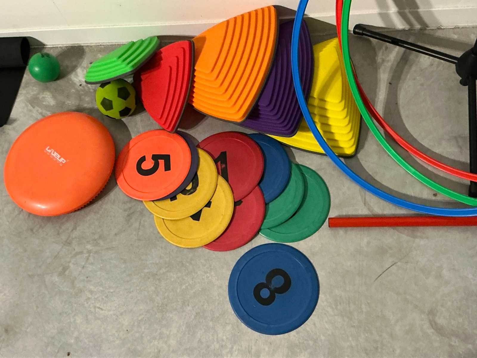 Waaronder Gonge en Liveup, Waaronder 8 hoepels, 10 vloerschijven, 5 kegels en evenwichtskussens Compleet met boom-statief Nee Type: Partij