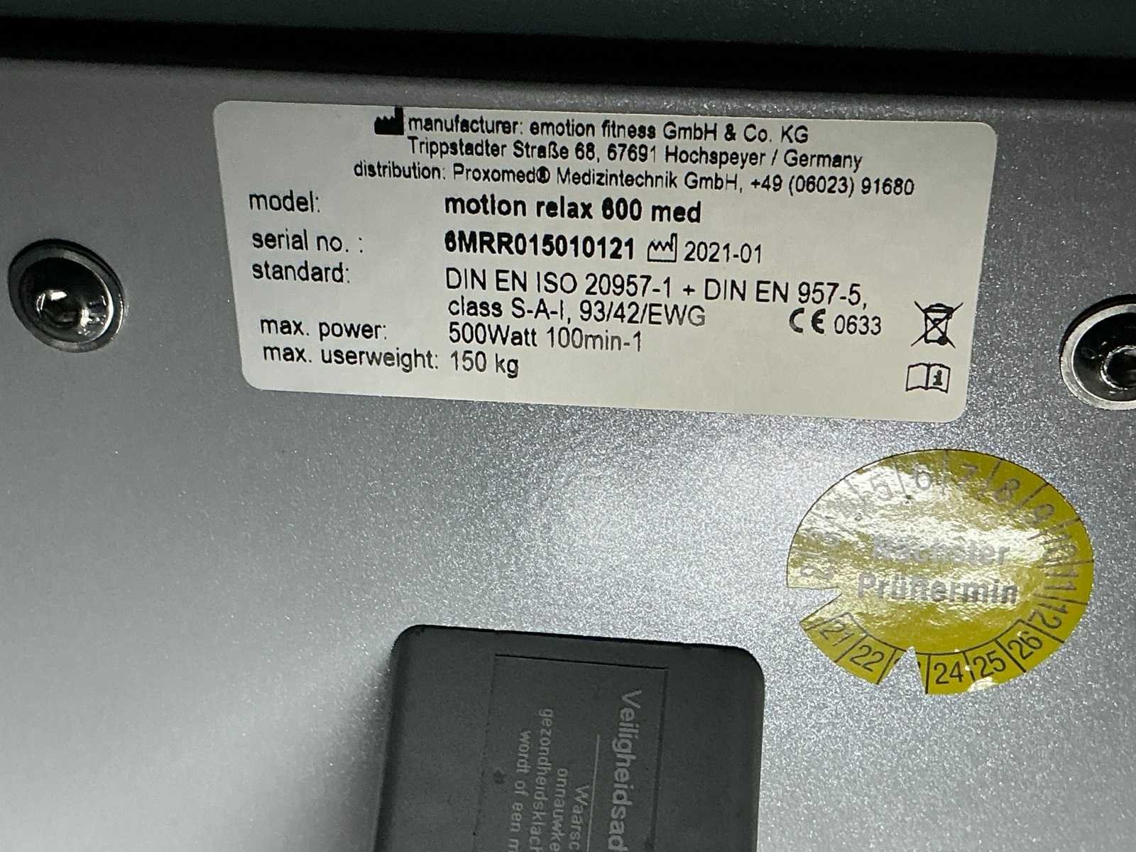 Nee Merk: Kardiomed Type: Motion Relax 600 med Bouwjaar: 2021 Serienummer: 6MRR015020121