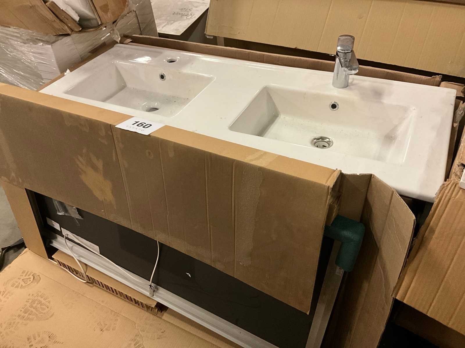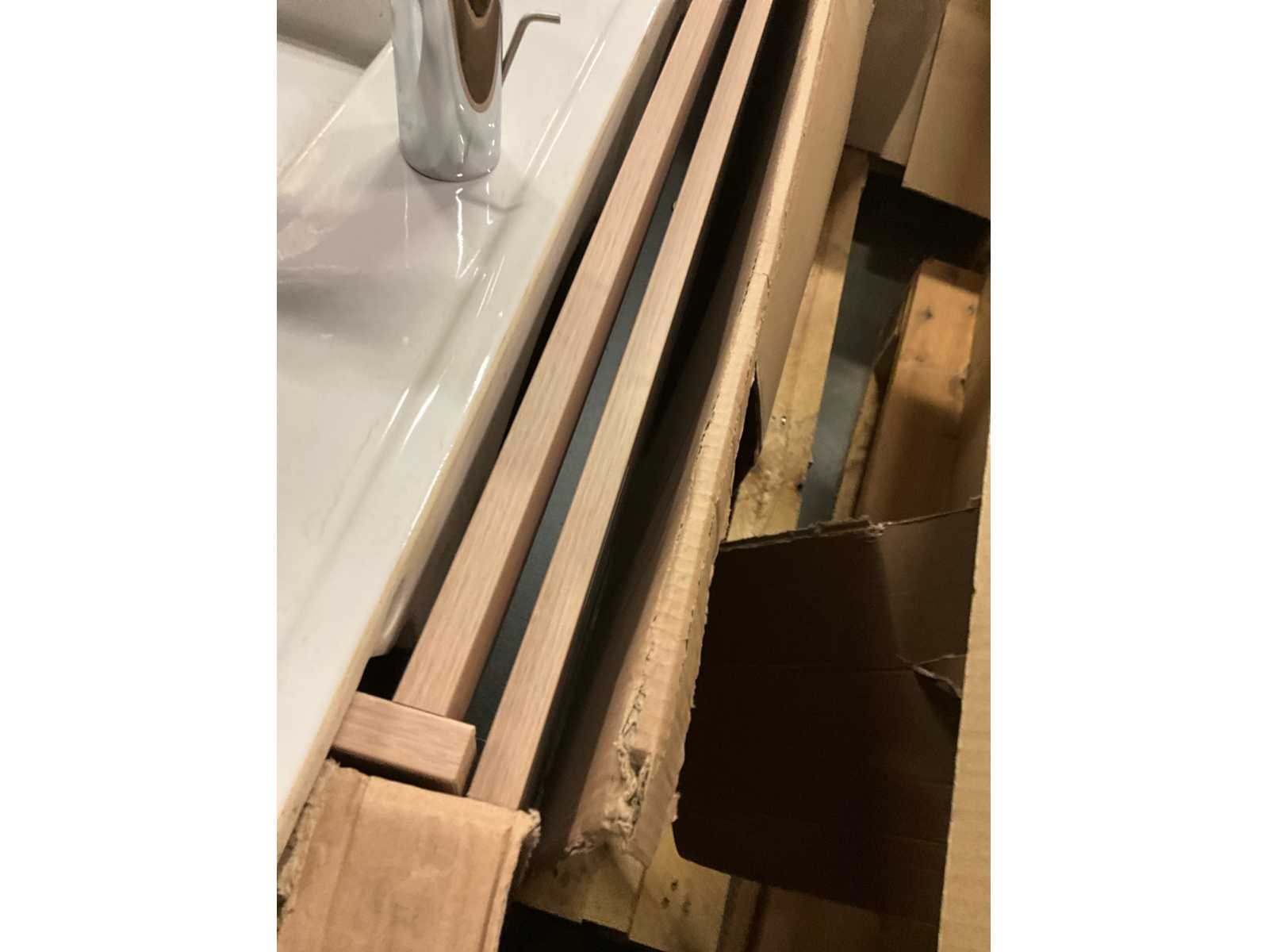 Bestaande uit onderkast, 120cm, 2 lades + dubbele keramiek wastafel 122x47cm met 1 mengkraan hansgrohe + spiegel 120x60cm Nee Kleur: Lichtbruin