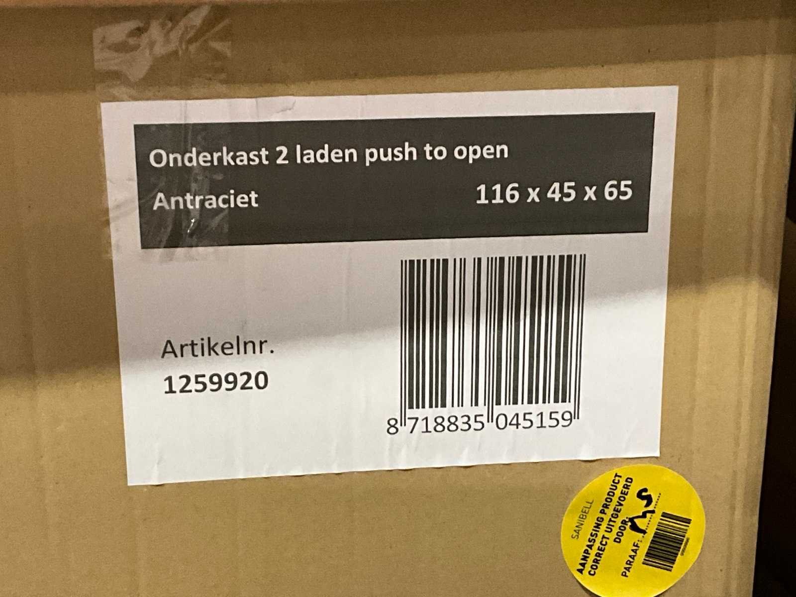 Bestaande uit antraciet onderkast 116x45x65cm + wastafel 120,5x46cm Nee