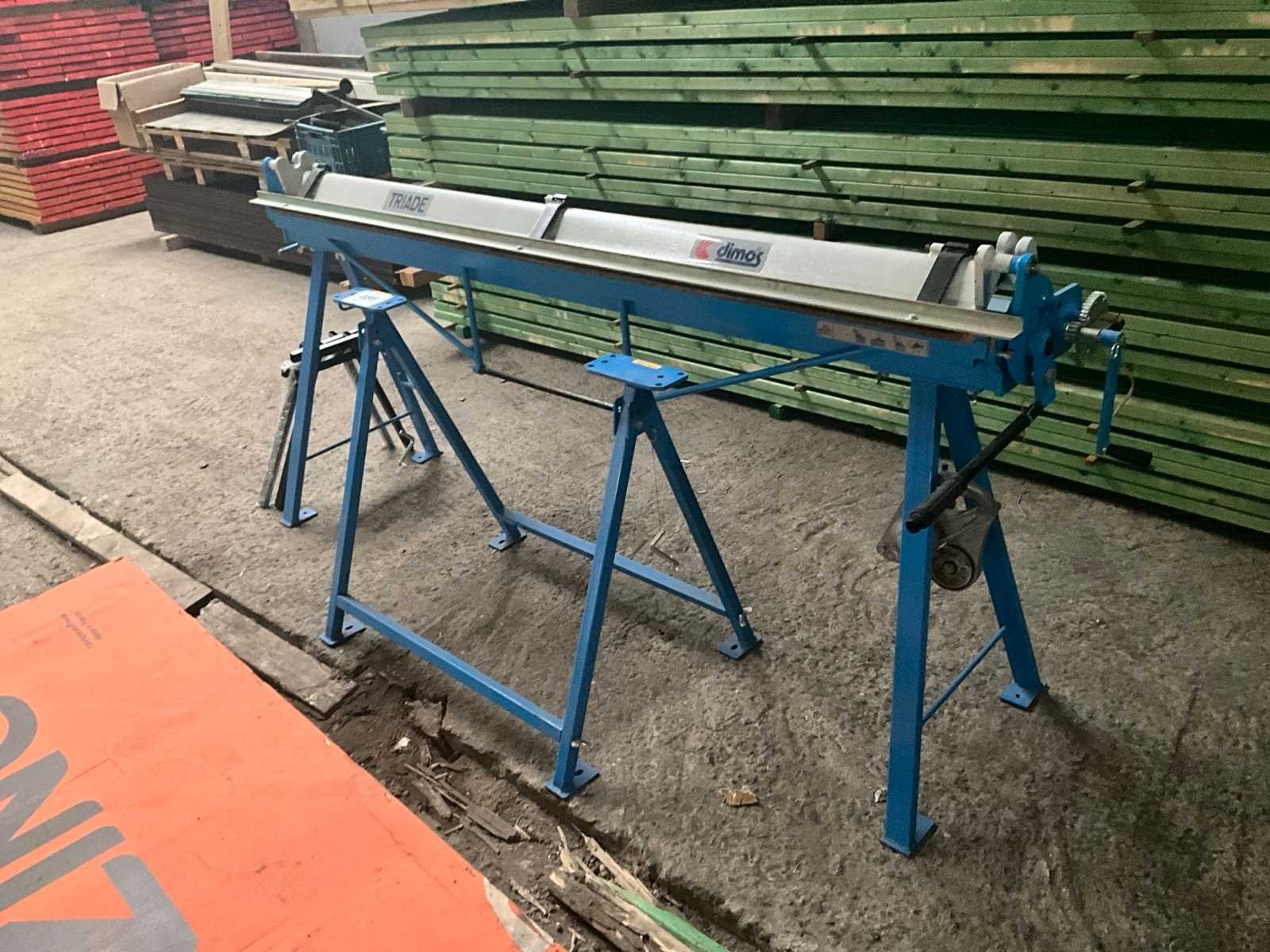 Voorzien van 4 staanders en 8 liggers en tussenlatten om een houten plaat te plaatsen. Compleet met bijzetwerktafel met afmetingen:105x60x80cm en 4x zinken plaat(antra) elke met afmeting:226x100cm Nee Merk: Dimos Type: Triade 2M Bouwjaar: 2023 Machinegewicht: 130kg Afmeting l: 600mm Afmeting b: 2260mm Afmeting h: 1100mm
