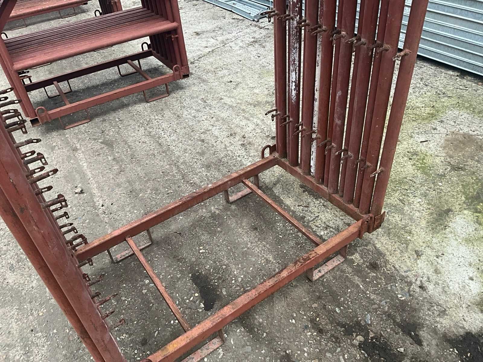Staanders met afmeting:130x216cm, op metalen stapelbok en circa 30 diagonalen met lengte 260cm Nee
