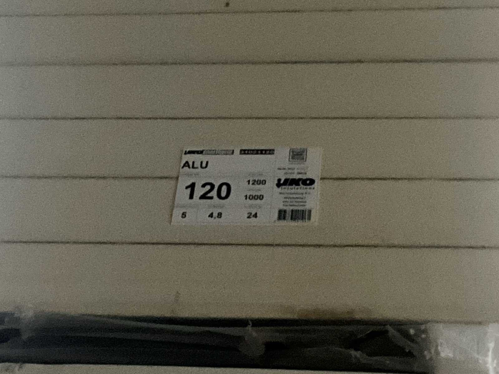 Thermal insulation (PIR) 12 cm dikte, in verpakking, per 20 (5 pakken x4) exemplaren op pallet, telkens 4 stuks in een pak. 1 pak = voor 4,80 m2, totaal pallet = 24 m2. Opgelet : deze pakken zijn volledig in orde maar met deels verkleurde panelen ! No Merk: IKO Product type: Enertherm ALU Lengte: 120cm Breedte: 100cm Hoogte: 12cm