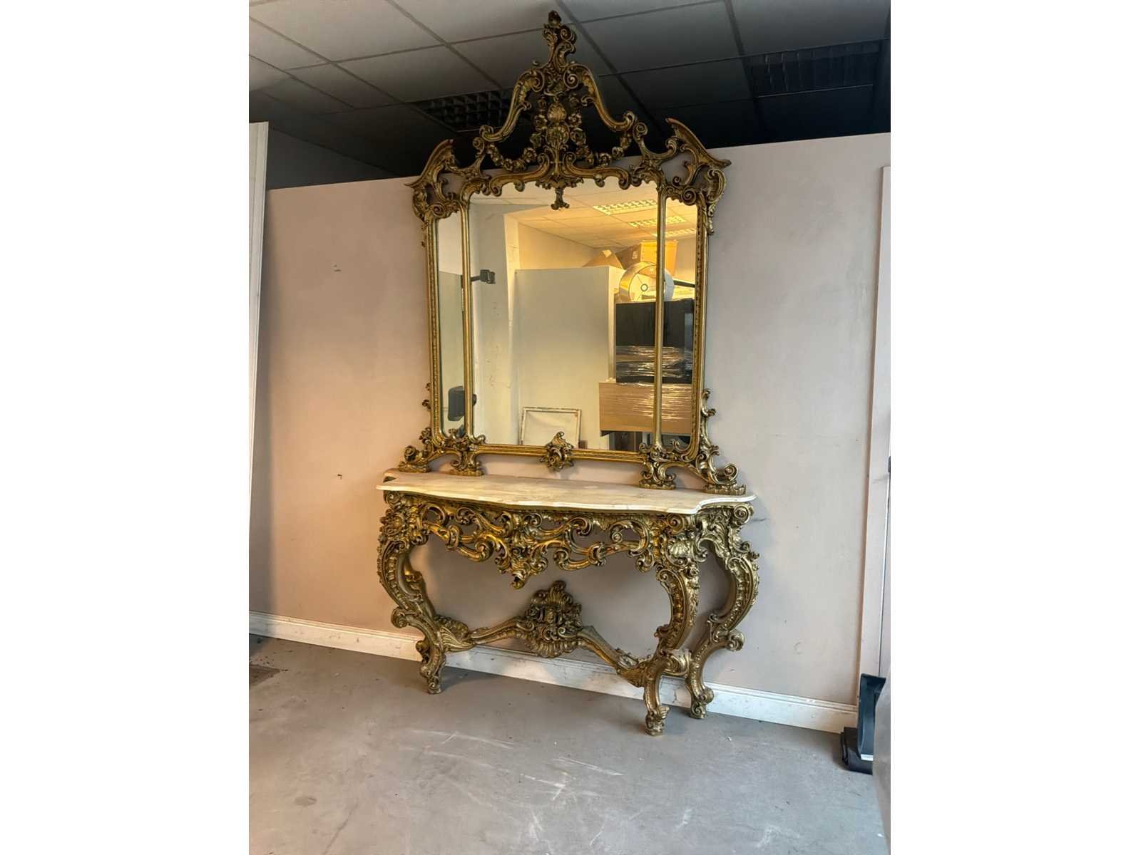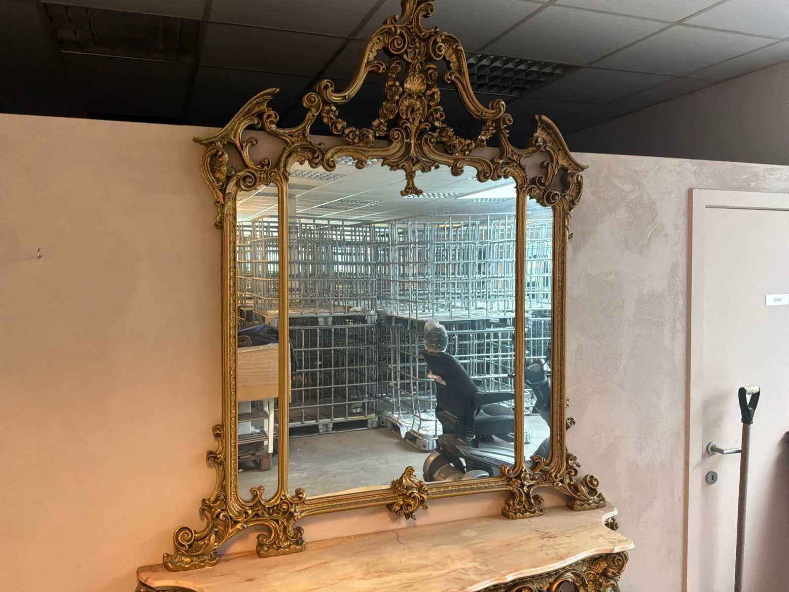 Natuurstenen blad In 2 delen Afmeting spiegel 154 x 182 cm Afmeting onderstel : 165 x 46 x 92 cm Nee