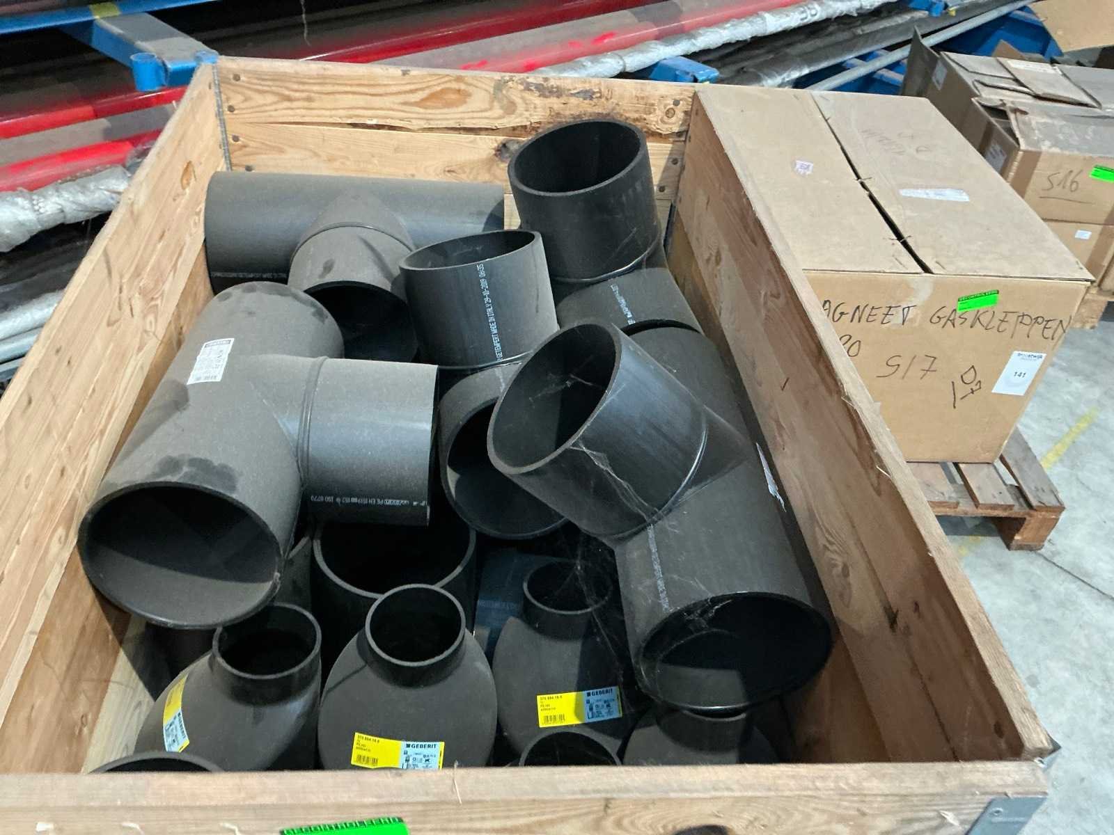 7 stuks van 200-110/ 12 stuks T-stukken diameter 200 mm x 90° Nee Merk: Geberit Type: 200/110 + 200 90°