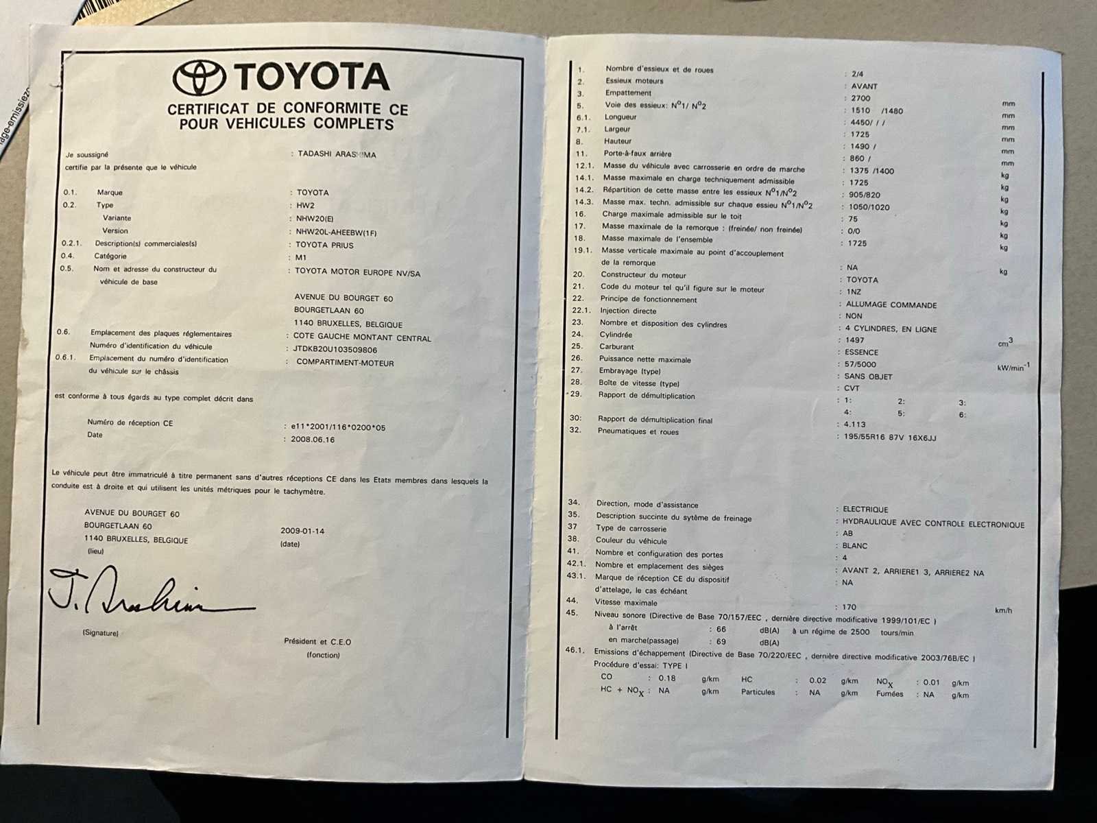 Start niet Nee Merk: Toyota Model: Prius Bouwjaar: 2009 Cilinderinhoud: 1497cc Vermogen (kW): 57kW Brandstof: hybride (elektrisch+benzine) Tellerstand niet afleesbaar: true Chassisnummer: JTDKB20U103509806 Datum eerste toelating: 1/4/2009 Aantal sleutels: 2 CVO verklaring: true Start en rijdt: Nee Keuringsrapport geldig tot: 1/10/2026 Andere boorddocumenten: Keuringsbewijs, Car-Pass Inschrijvingsbewijs - deel 1 : Aanwezig Inschrijvingsbewijs - deel 2: Aanwezig