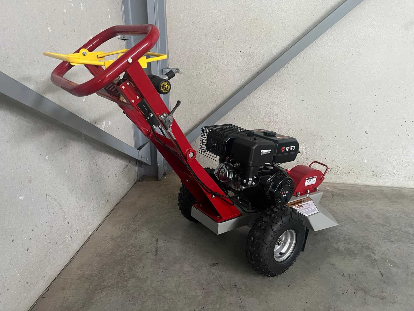 <ul> <li><strong>stobbenfrees</strong></li> <li><strong>motor:</strong> Rato 4-takt benzine</li> <li><strong>motorinhoud:</strong> 420 cc</li> <li><strong>motorvermogen:</strong> 8,5 kW</li> <li><strong>starten:</strong> trekstarter</li> <li><strong>aandrijving:</strong> 2x V-riem</li> <li><strong>koppeling:</strong> centrifugaalkoppeling</li> <li><strong>rem:</strong> trommelrem</li> <li><strong>freeswieldiameter:</strong> 300 mm</li> <li><strong>freeswieldikte:</strong> 12 mm</li> <li><strong>tanden:</strong> 8 tanden met carbide tip</li> <li><strong>freeshoogte:</strong> 600 mm</li> <li><strong>freesdiepte:</strong> 235 mm</li> <li><strong>gewicht:</strong> 134 kg</li> <li><strong>let op:</strong> <ul> <li>Toonzaalmodel, lichte gebruikssporen mogelijk.</li> <li>Controleer montage en voeg olie en brandstof toe. </li> <li>Smeer bewegende delen voor gebruik.</li> </ul> </ul> Nee Merk: Rato