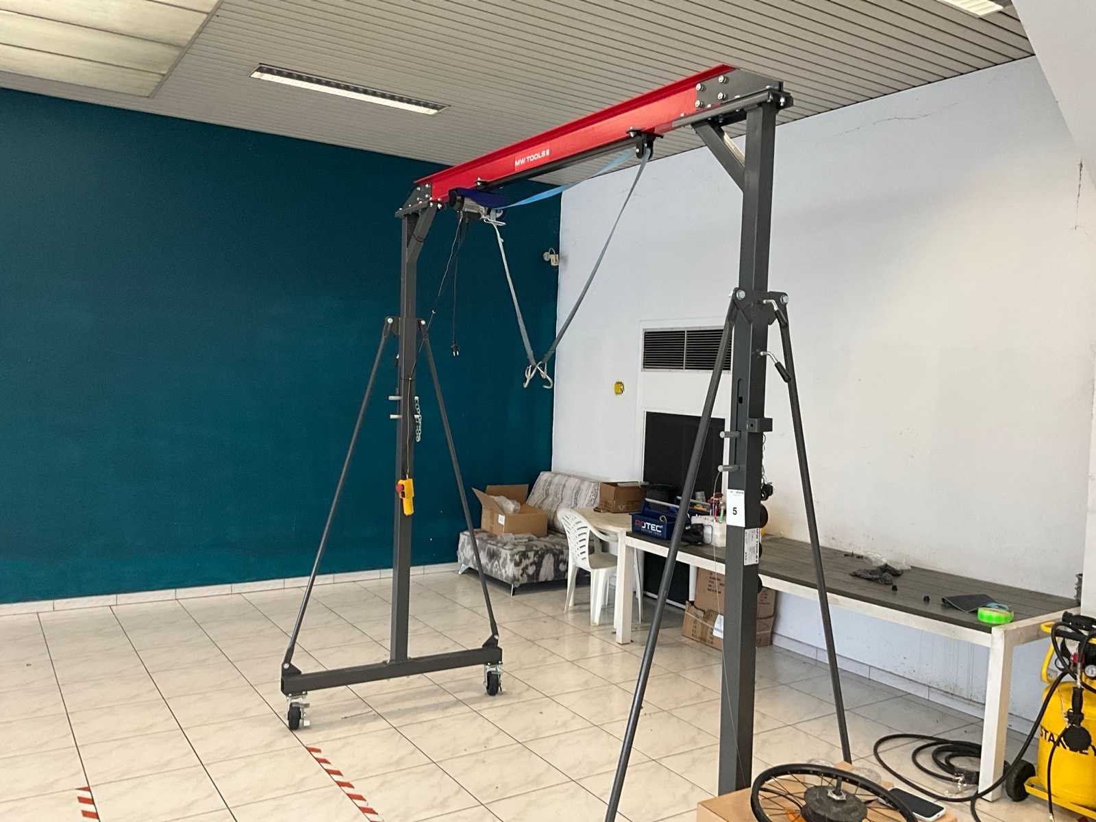 Voorzien van electro hijslier met dubbel heflint, 4x fixeerbare zwenkwiel, verstelbare hijsbalk tss 2400-3600 mm, demo toestel No Merk: MW Tools Type: PTLK1 Bouwjaar: 2024 Hijsvermogen: 128kg Aansluiting: 220V Totale afmeting L: 1300mm Totale afmeting Breedte: 2700mm Totale afmeting Hoogte: 2400mm