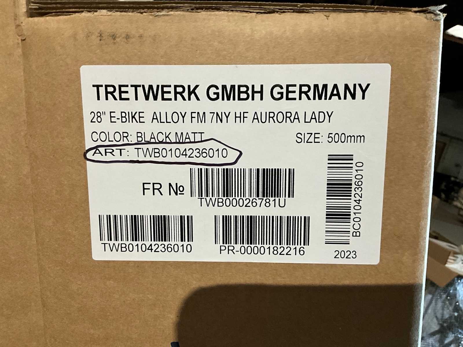 In originele verpakking, nog te monteren, BE-UCH28-00222 BC0104236010 Fm-A Aurora 28" black matt No Merk: Tretwerk Model: Aurora Lady retro style Motorpositie: Voorwiel Remsysteem: Blokjes Versnellingen: 7 Framemaat: 28" Type: Fm-A Aurora Kleur: black matt