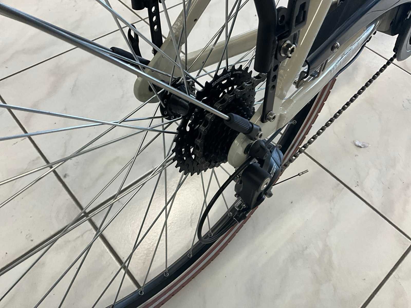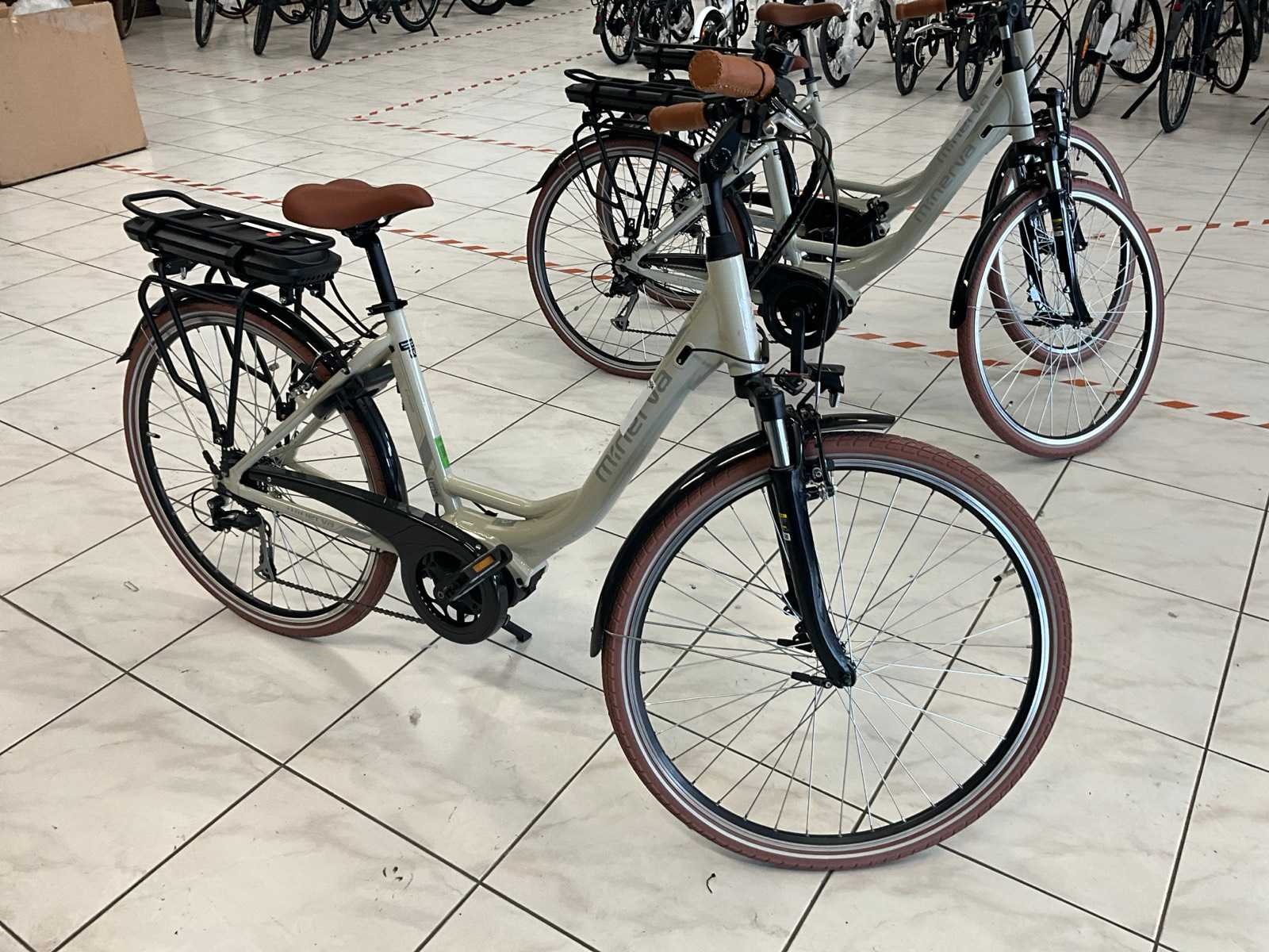 Voorzien van Shimano versnellingen, Minerva elektromotor met batterij No Merk: Minerva Model: E power Motorpositie: Midden Remsysteem: Blokjes Voorvering: true Versnellingen: 9 Framemaat: 28’’