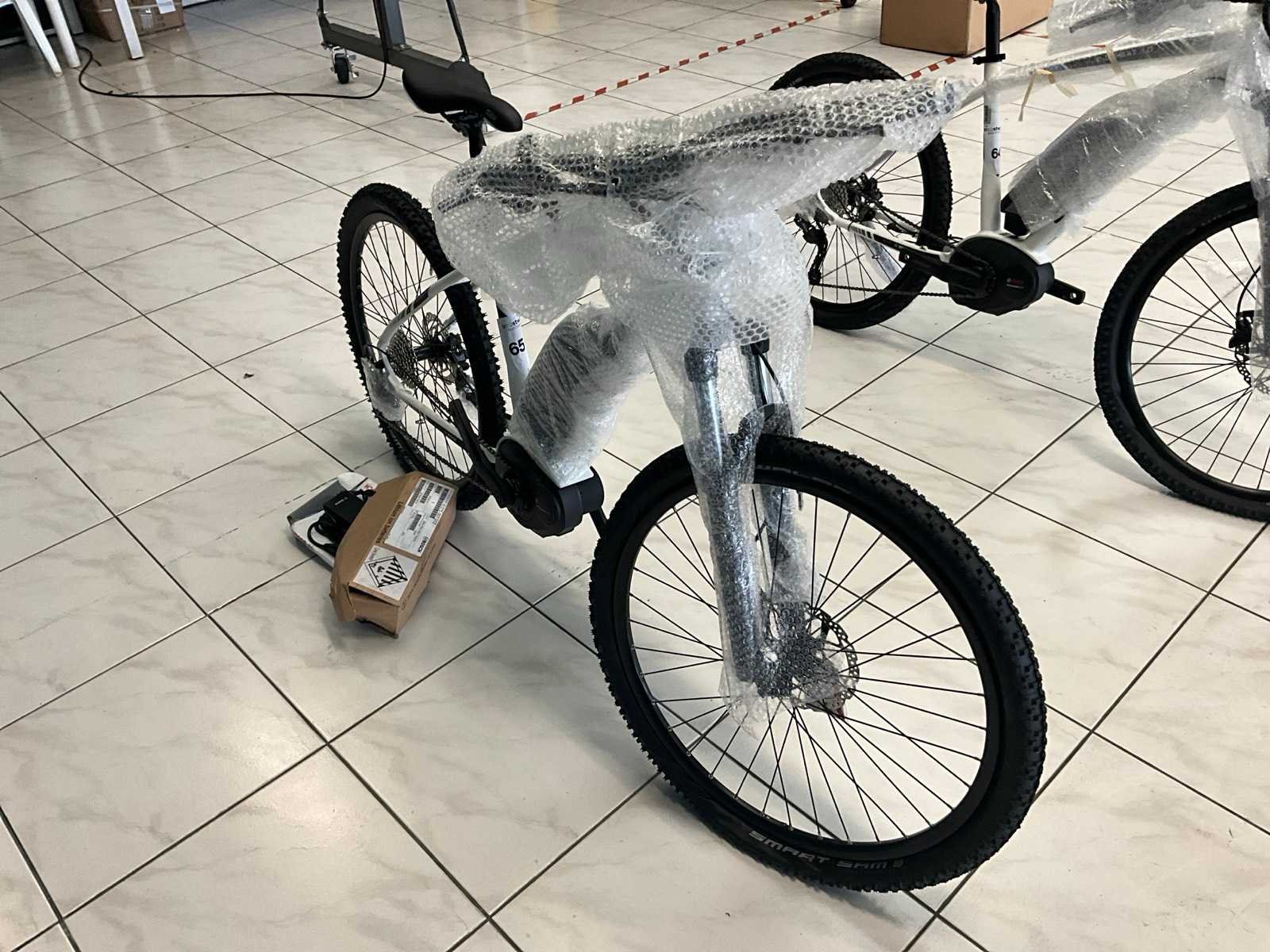 Voorzien van Bosch motor en batterij 400, Shimano versnellingen, linker beschermkap motor ontbreekt No Merk: Chrisson Model: E-scheat 1.0 Remsysteem: Schijven Voorvering: true Versnellingen: 9 Framemaat: 27,5