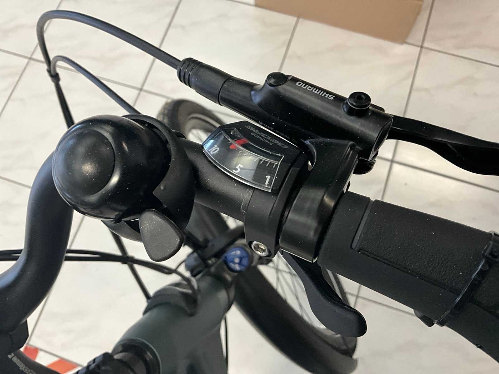 Voorzien van Bosch middenmoter batterij en oplader, Shimano versnelling No Merk: Epona Motorpositie: Midden Remsysteem: schijven Voorvering: true Versnellingen: 10 Framemaat: 28’’