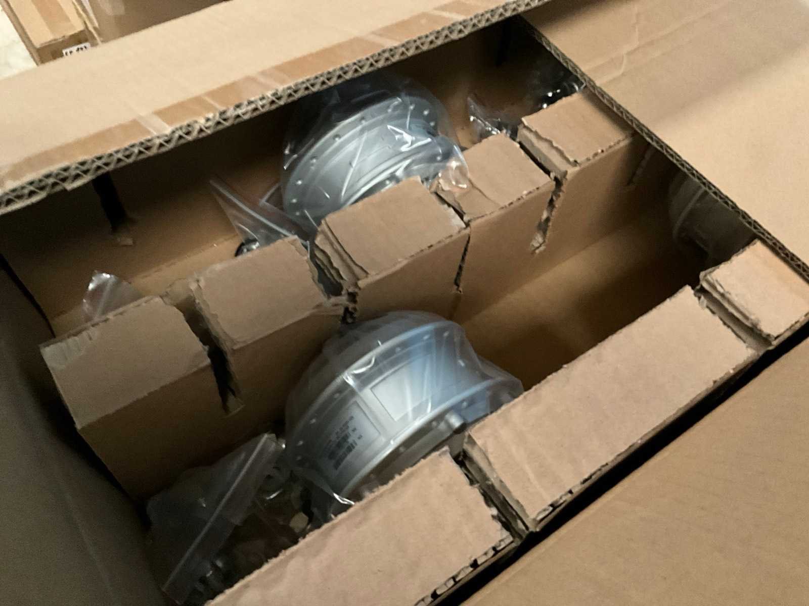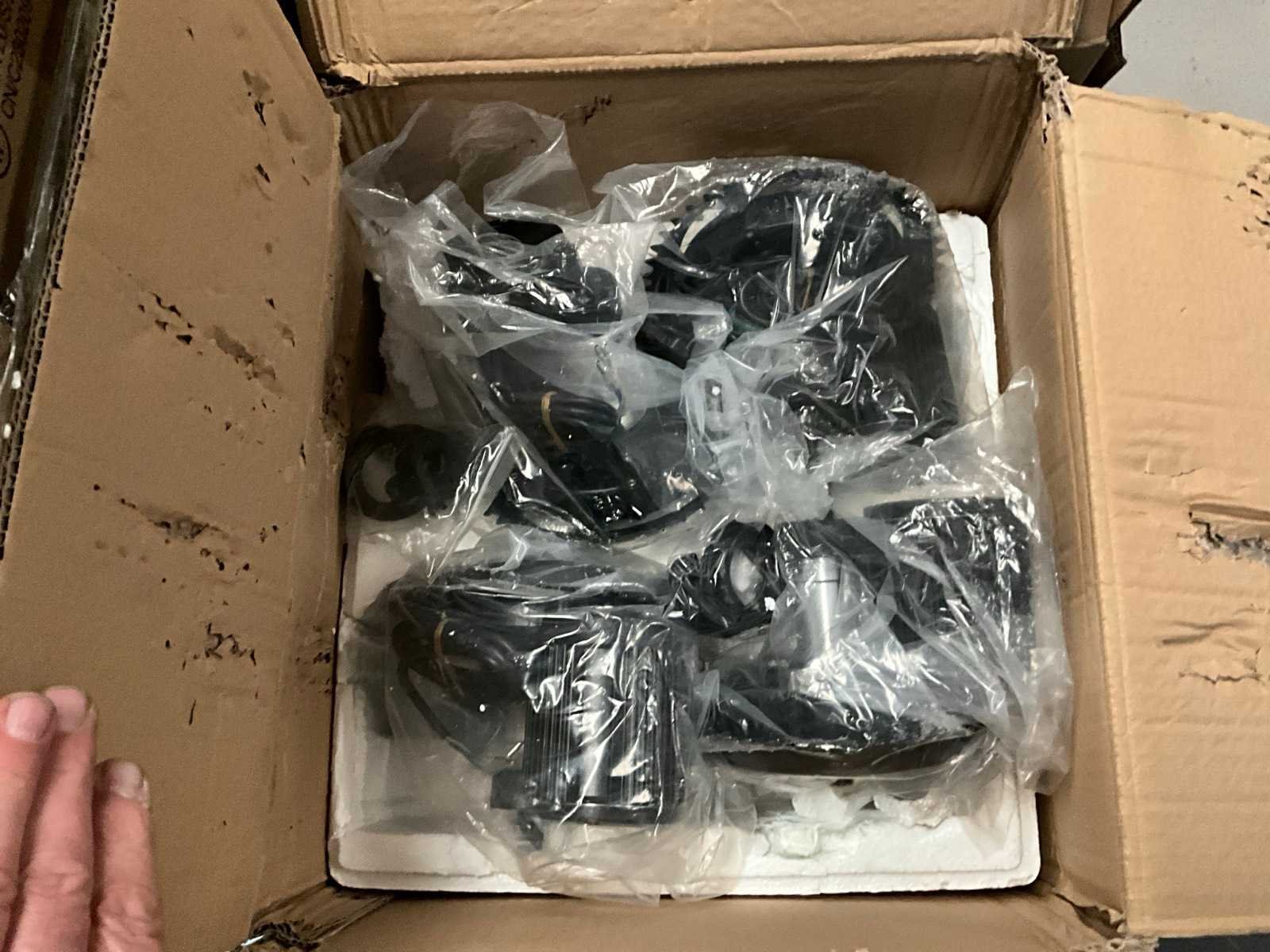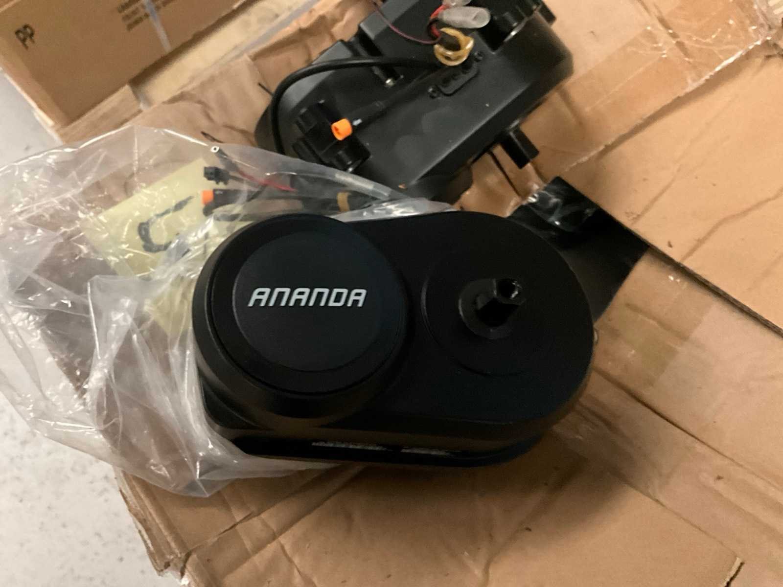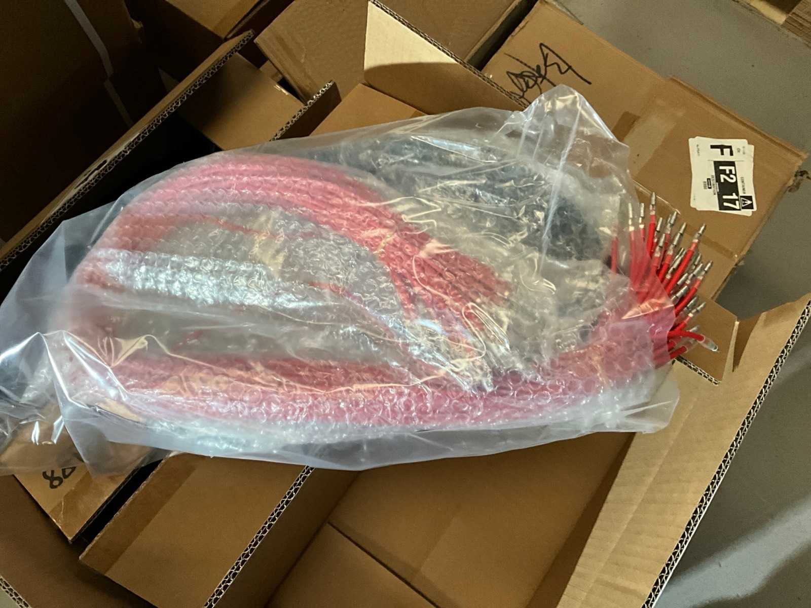 Bestaand uit 3x pallet met inhoud bestaande uit sensoren-bekabeling-batterij doc-in platen, 12x karton electro wielmotoren-6x karton middenmotoren-LI-ION batterijen type 4G/Y26/S/21 in 3x karton-2x karton opladers-7x karton wielremmen, enz.. No