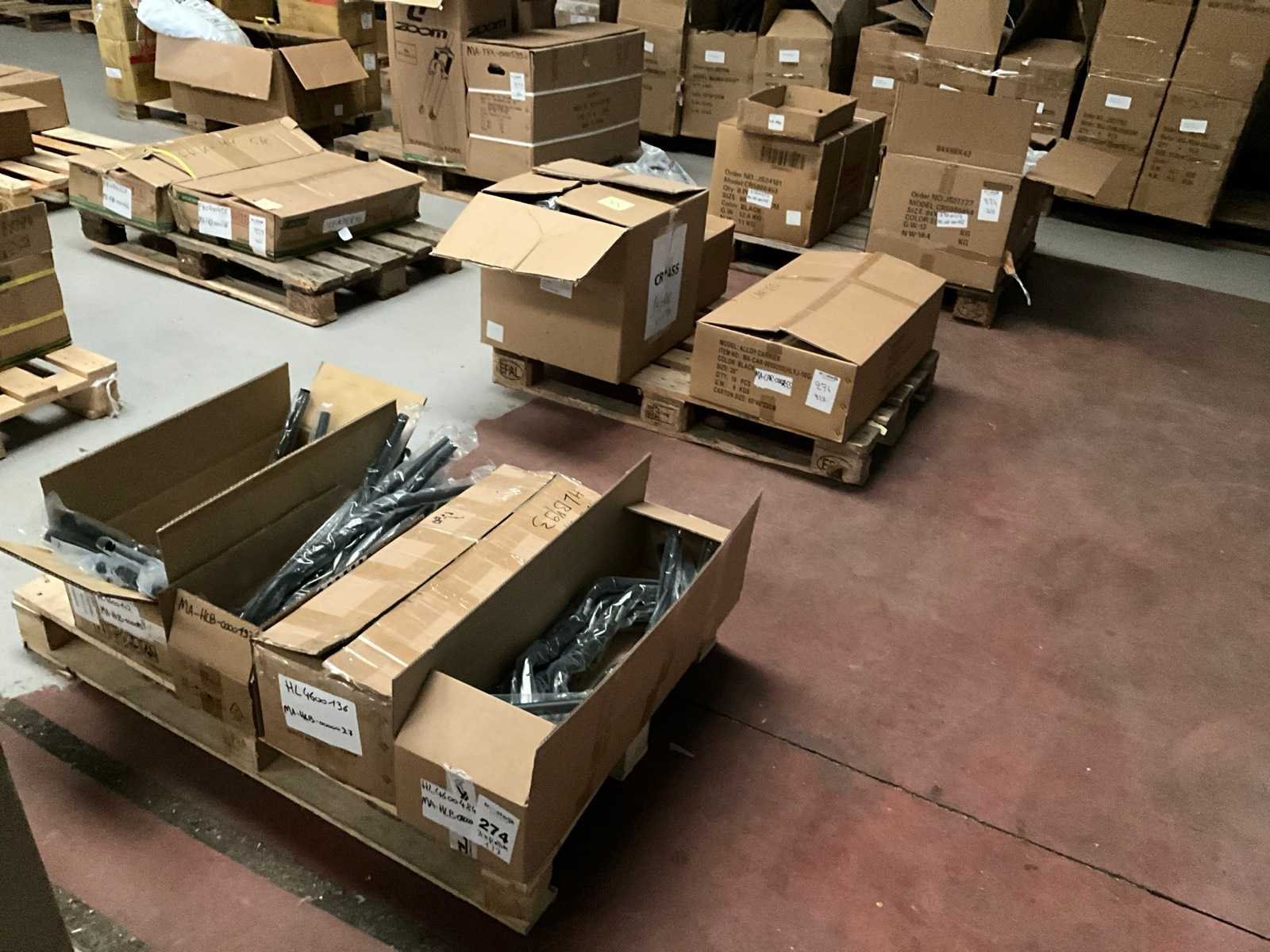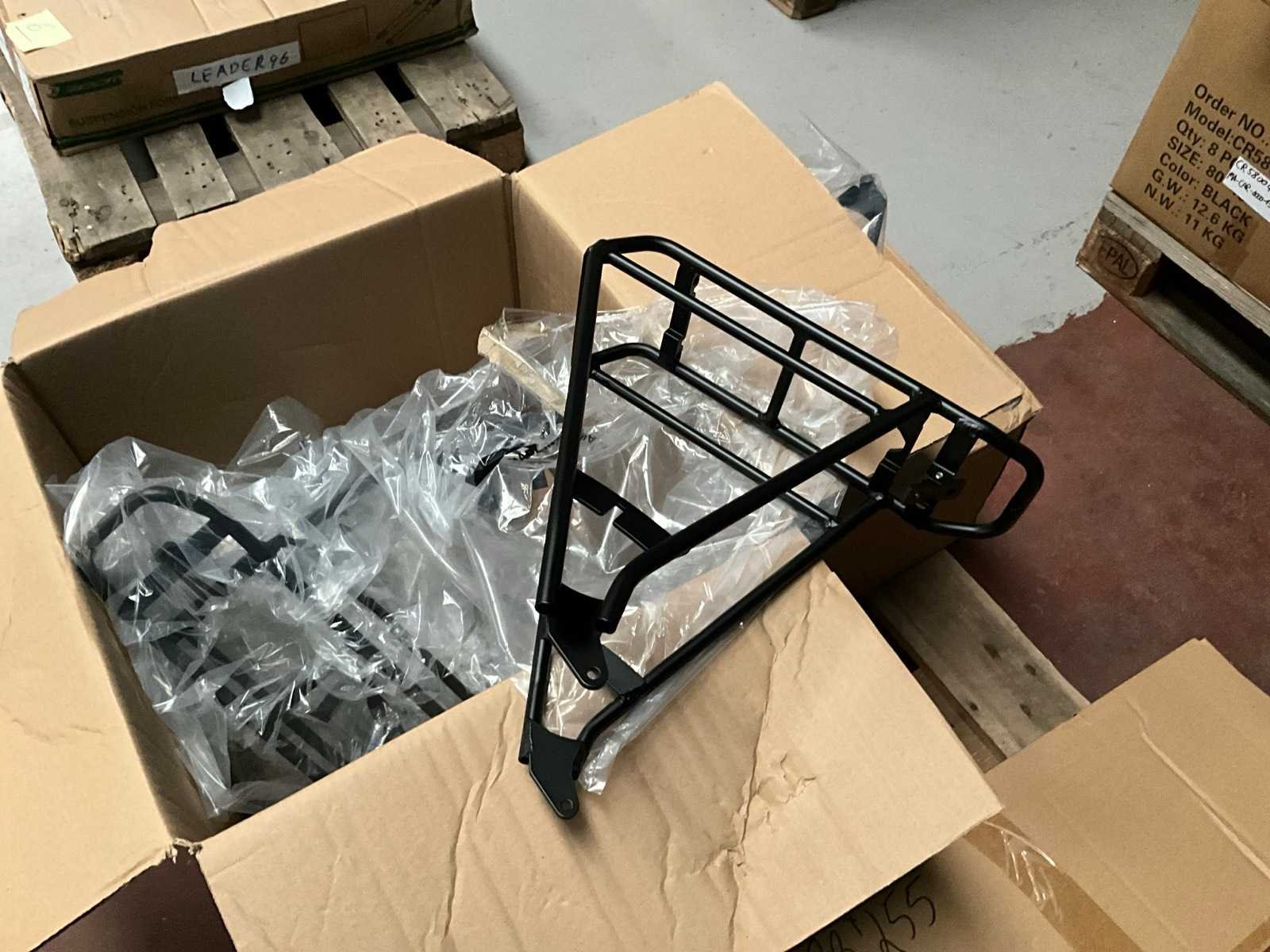 Bestaand uit 3x pallet met inhoud bestaande uit 4x karton stuurstangen, +2x pallet met diverse fietsrekjes No