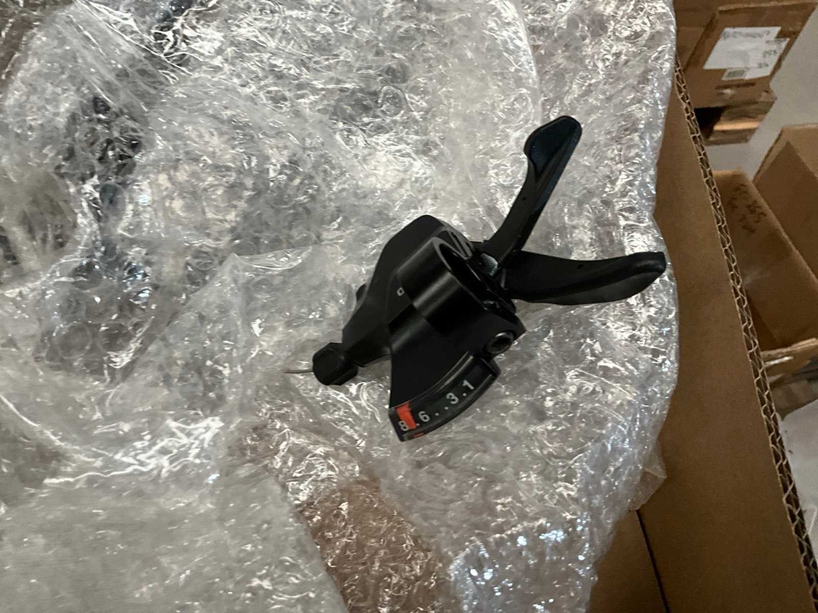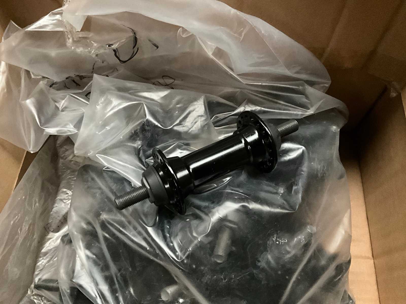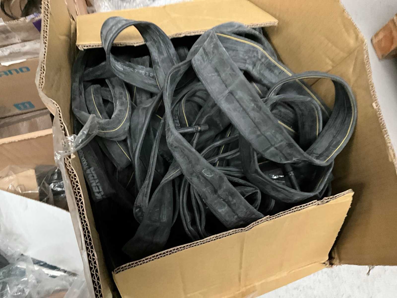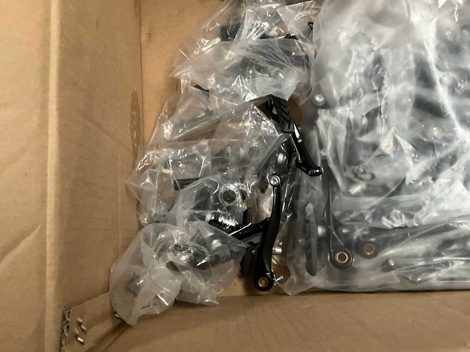Bestaand uit 6x pallet met inhoud bestaande uit spatborden, hydraulische handremmen, wielnaven, tandwielen, versnellingsapparaten, binnenbanden, voor een achterlichten, enz… No