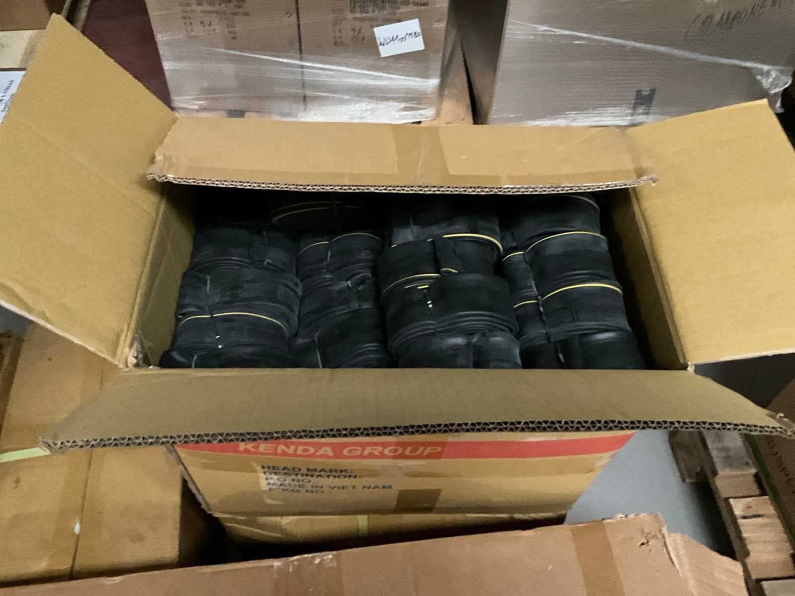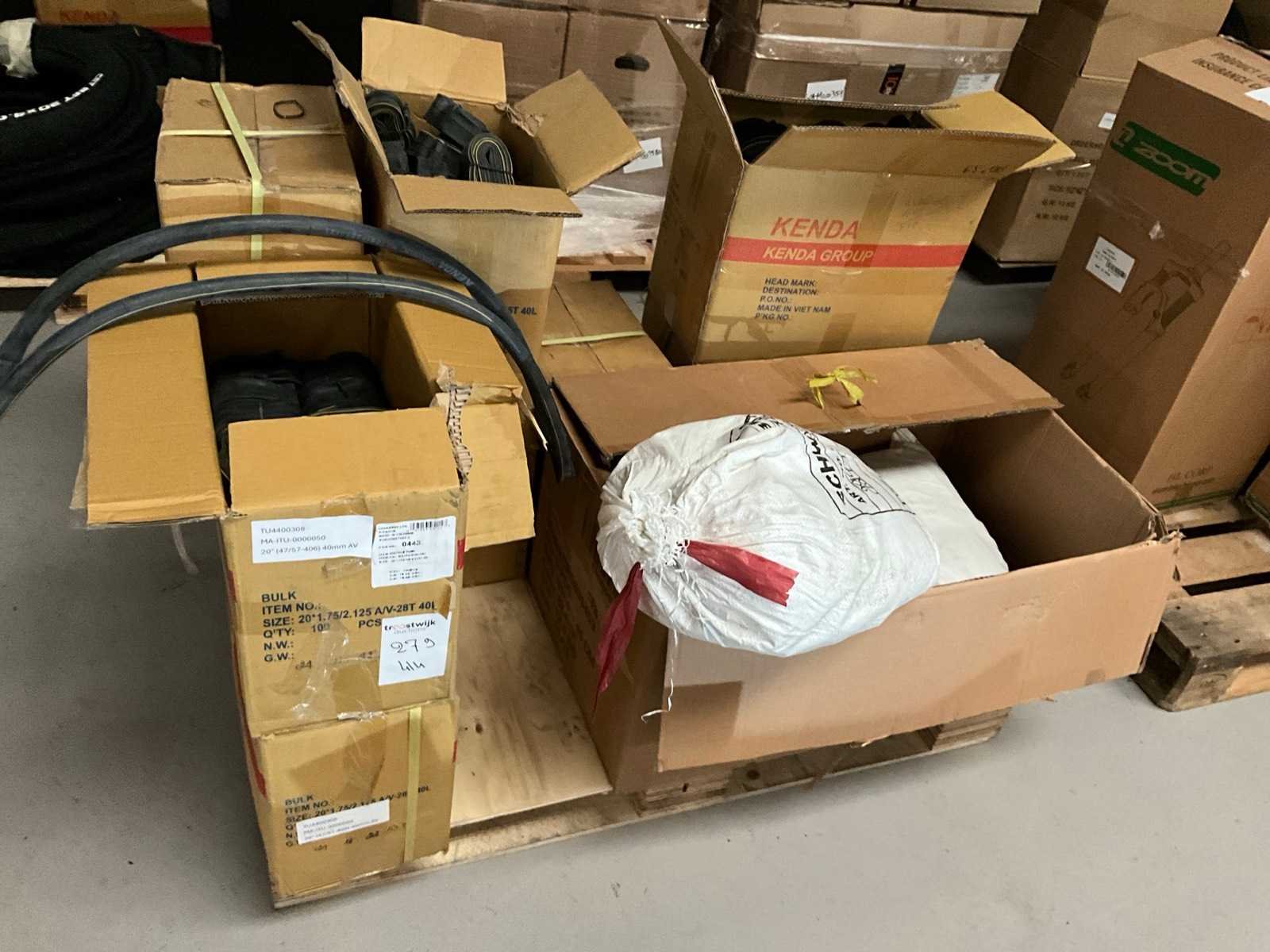 Bestaand uit 4x pallet met inhoud bestaande uit spatborden, spatbord bevestigingen, binnenbanden, enz… No