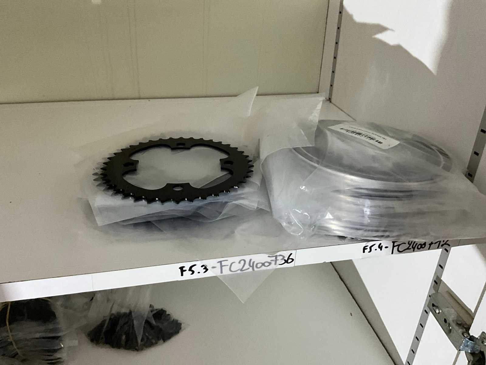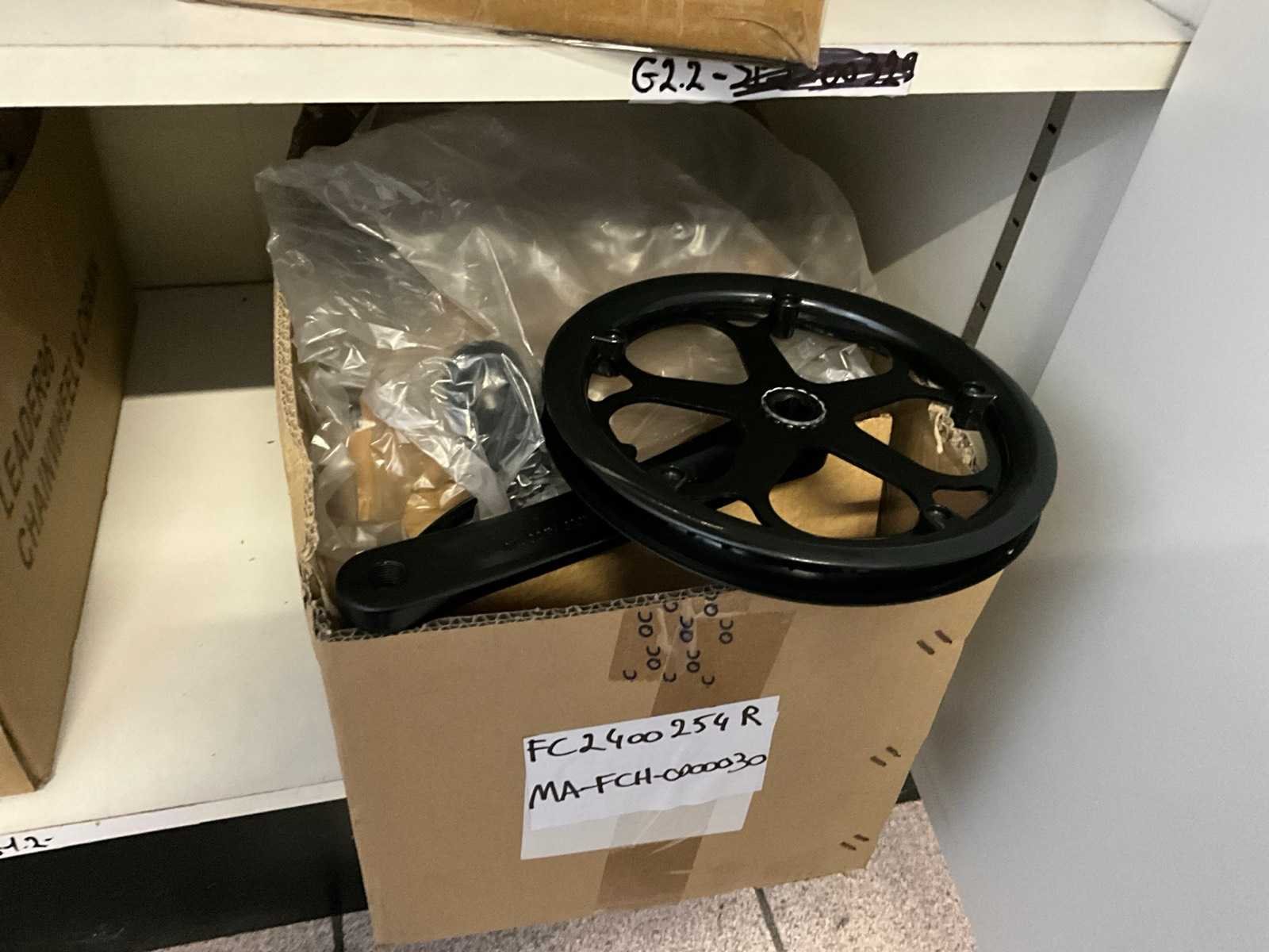 Bestaand uit aandrijf tandwielen, parkeersteunen, handremmen, trappers, enz.., in en op kast 6-7+8 No