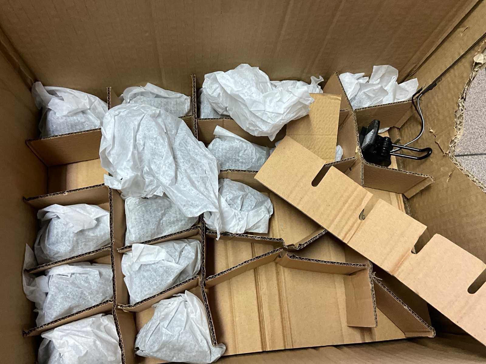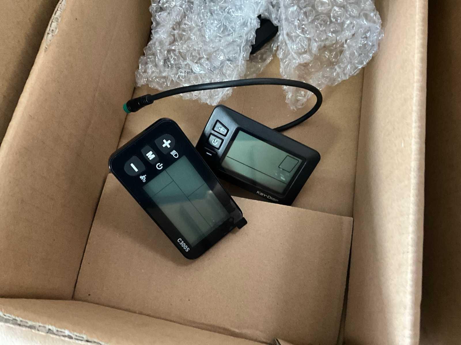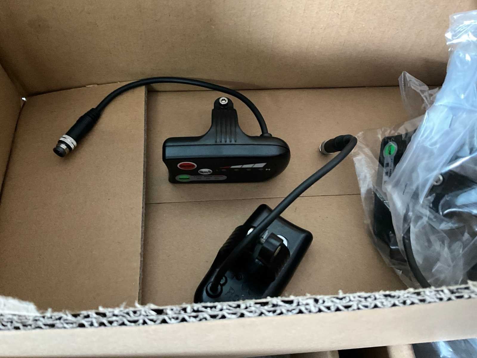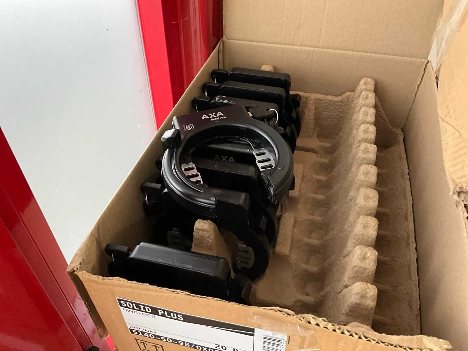 Bestaand uit tandwielen, remblokjes, verlichting, ketting bescherming, bedieningskastjes E-bike, wielsloten +circa 10 diverse fietsbatterijen, enz.., in en op lage kast nr 12+13 en in de midden ruimte No