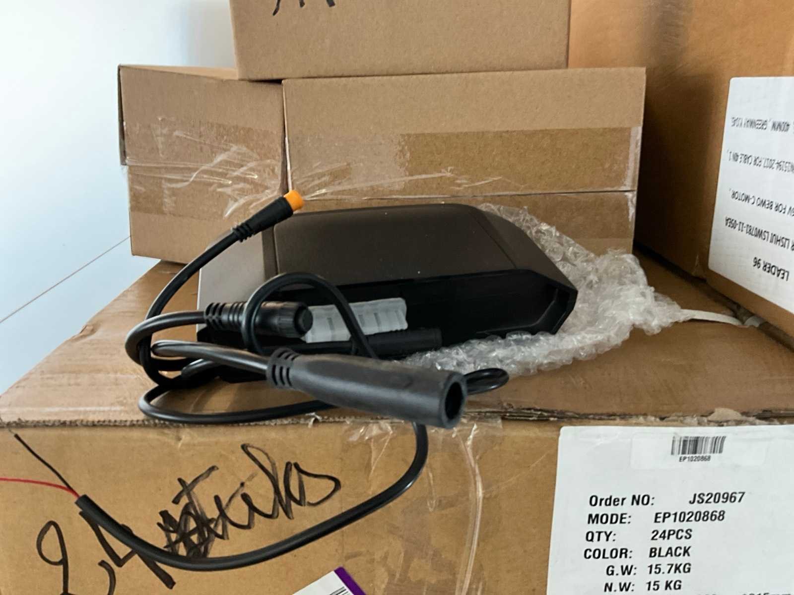 Bestaand uit 9x karton met opladers voor e-bike batterij, +4x karton met bedieningsschermen King-Meter, +3x karton met opladers, + 15x karton met totaal circa 350 stuks doc-in modules voor fietsbatterij No