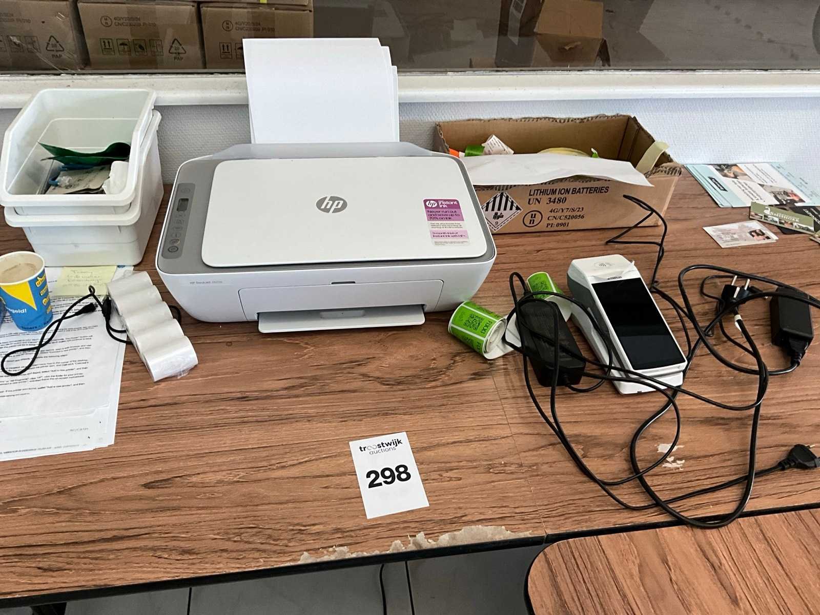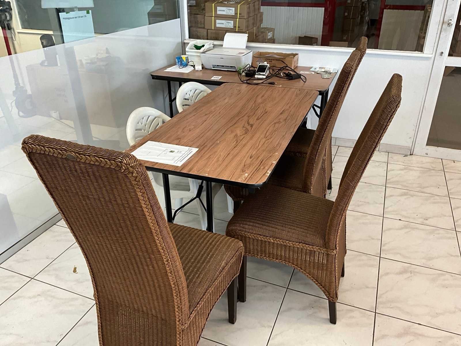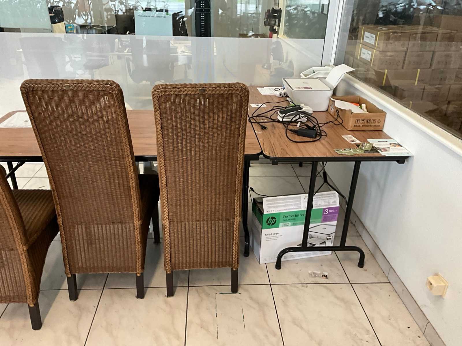 Bestaand uit HP Deskjet printer type 2820E, betaalterminal, oplader laptop, 2x opvouwbare tafel met 6 stoelen No