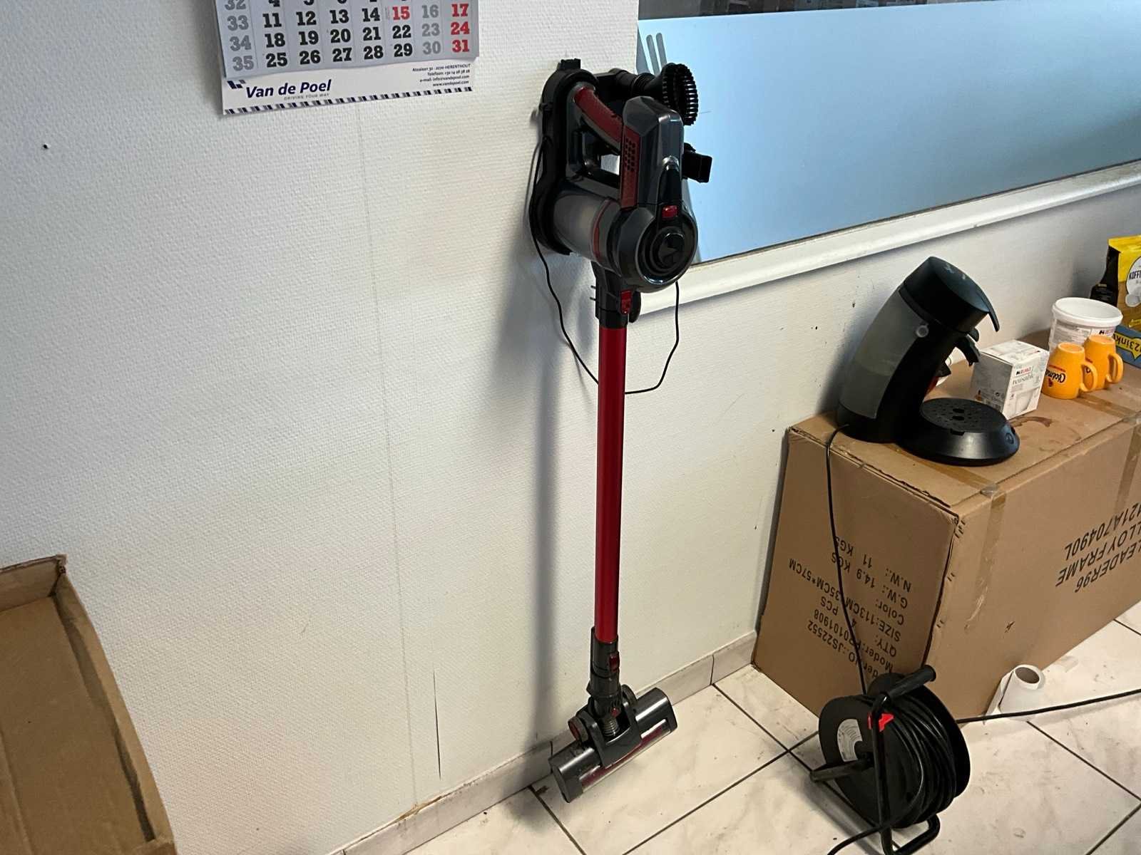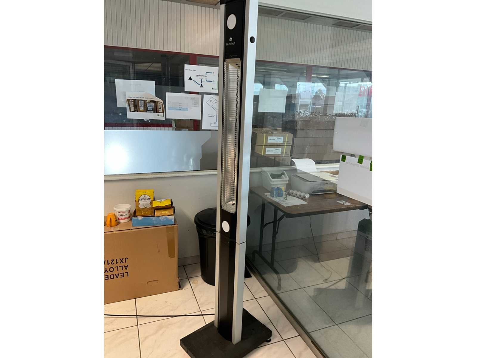 Bestaand uit 4x bureautafel met 4 bureaustoelen, printer Kyocera Ecosys M5526cdw, 3x computerscherm, koffiezet Senseo, stofzuiger Koenig, oproller verlengsnoer, electrische heater Blumfeldt No Merk: Partij Bureau accessoires