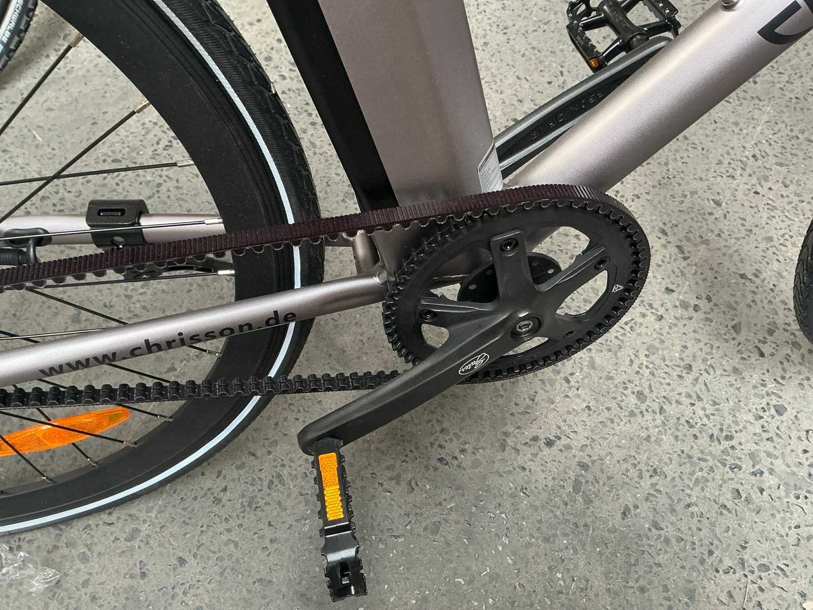 Voorzien van riem aandrijving No Merk: Chrisson Model: eOctant Motorpositie: Achterwiel Remsysteem: Schijven