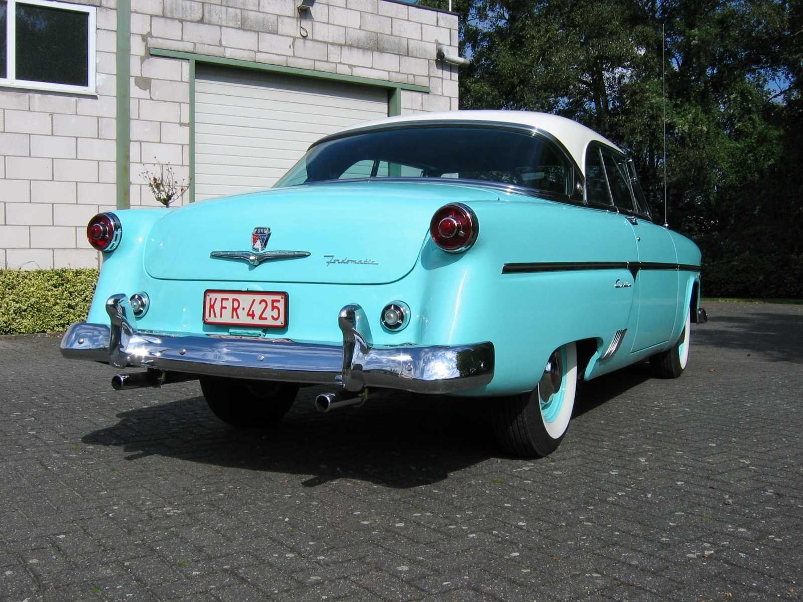 Deze wagen werd volledig gerestaureerd en herspoten. De gereviseerde motor is een V8 239 ci ( 3,9 ltr 130 pk). De wagen heeft een automatische versnellingsbak, en is ook met rem - en stuurbekrachtiging uitgerust. Heeft eveneens getinte ruiten. Onderkant werd volledig zuiver gemaakt, geschilderd en behandeld met anti-roest coating. Binnenkant van de deuren zijn met wax ingespoten. De stuurinstallatie werd volledig vernieuwd. 16.000 km gereden bij huidige eigenaar. Alles aan deze auto werkt zoals het hoort, zelfs het klokje, sigarenaansteker en radio werken. Deze auto is steeds onderhouden (smeren&olie, klein onderhoud, groot onderhoud), zoals door Ford voorgeschreven. Heeft zopas nog een onderhoud gehad, zodat van deze prachtige oldtimer optimaal kan genoten worden. - Motor: V8 239ci (3.9L 130PL) - Fordomatic Automaat - Rembekrachtiging - stuurbekrachtiging - radio + verwarming - getinte ruiten - dubbele uitlaat Nee Merk: Ford Bouwjaar: 1954 Afgelezen mijlenstand: 60000mi Model: Crestline Victoria Brandstof: Benzine Boorddocumenten aanwezig?: true Nationaliteit documenten: Belgisch Aandrijving: Achter Stuurwiel: links Cilinderinhoud: 3900 Aantal cilinders: 8