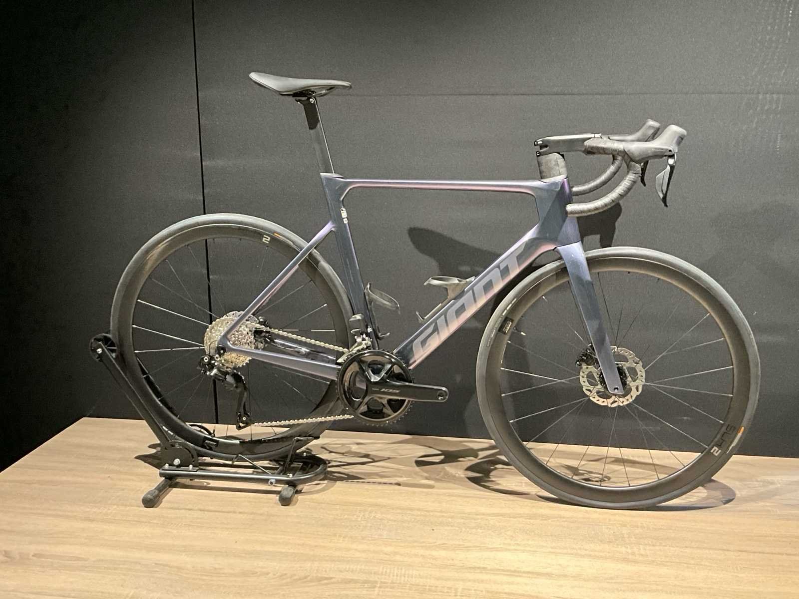 Nieuw en gemonteerd. Carbon frame / Shimano 105 di2 elektronisch 2x12sp / Carbon wielset SLR2 / Disc / Maat ML. Zie foto’s voor details. No Merk: Giant Model: Propel Advanced 1 ML Blue Dragonfly