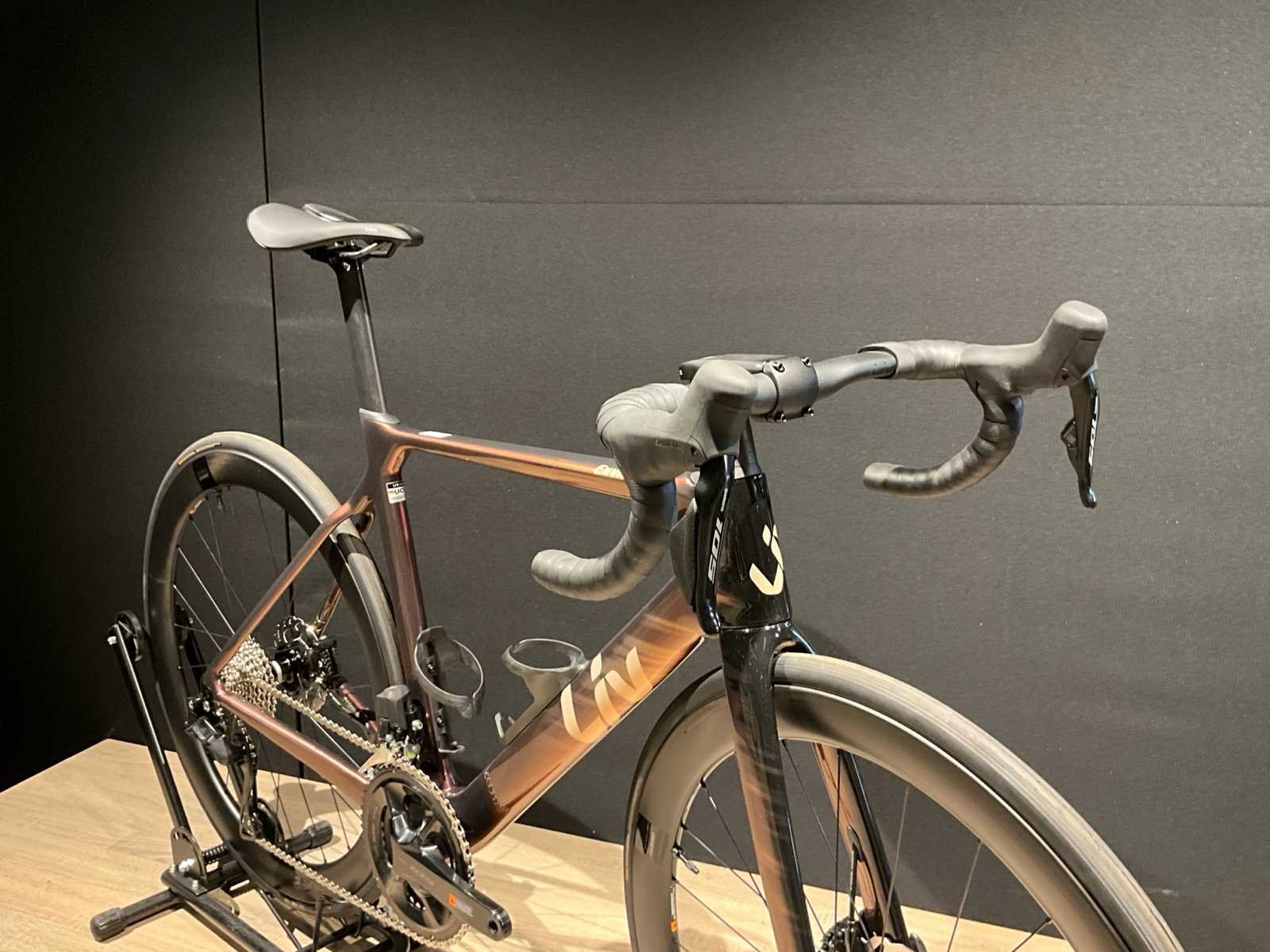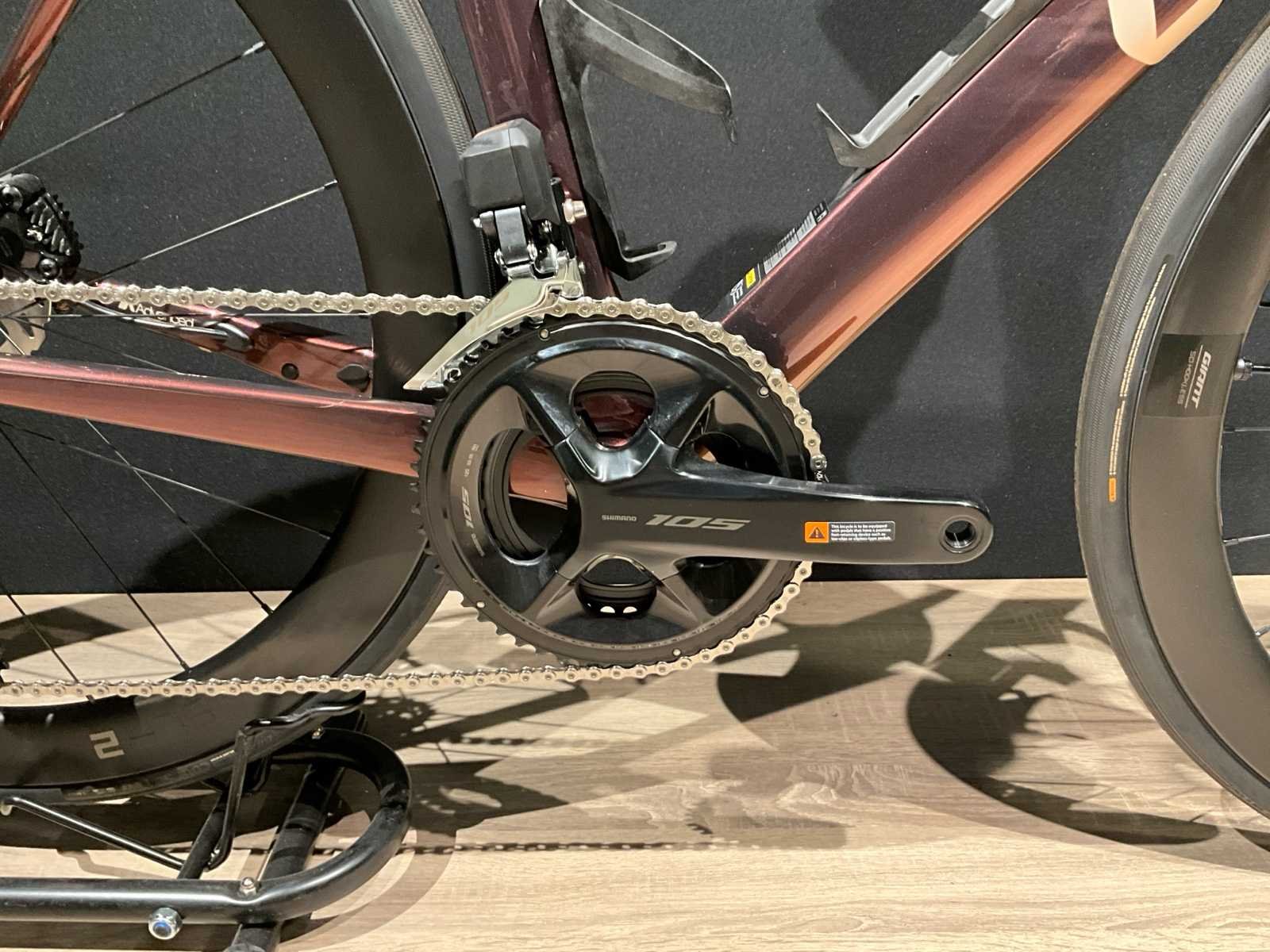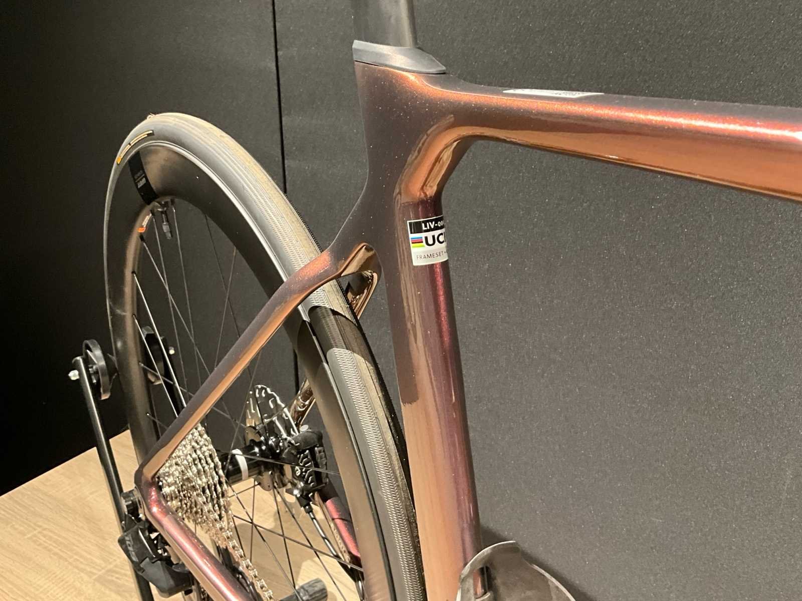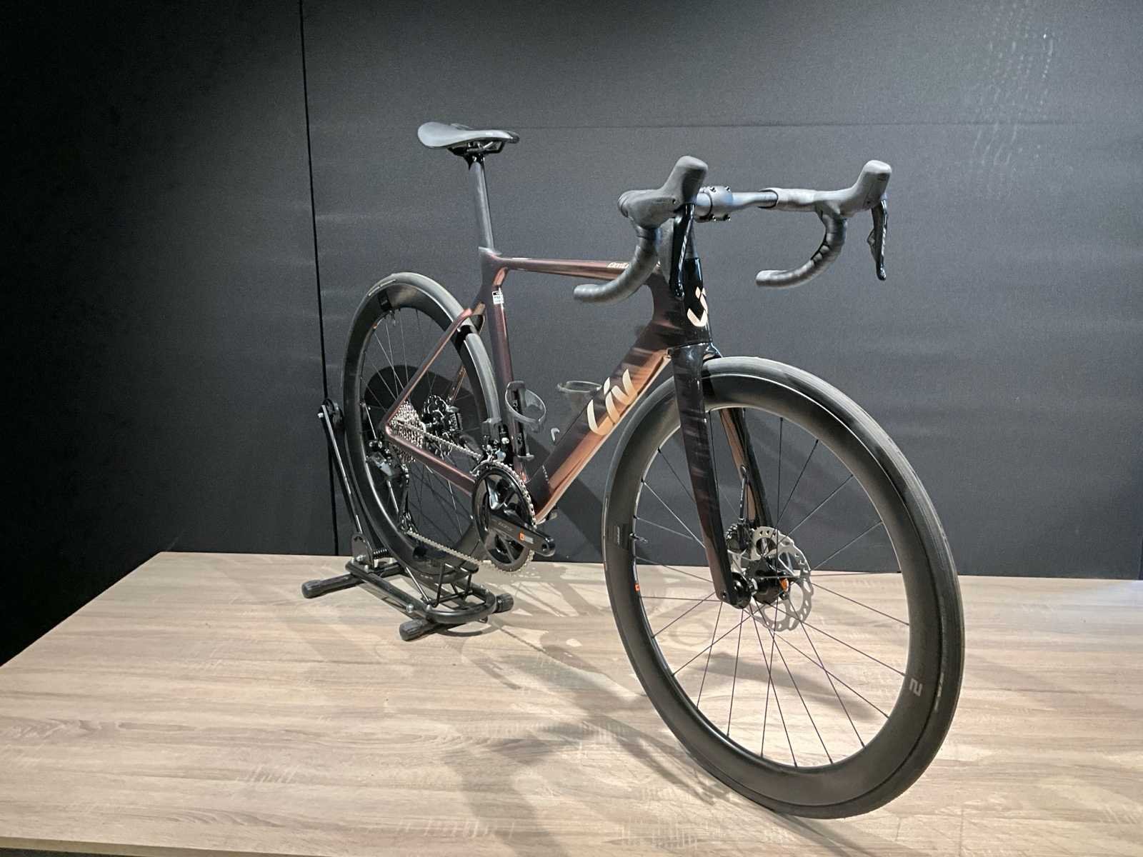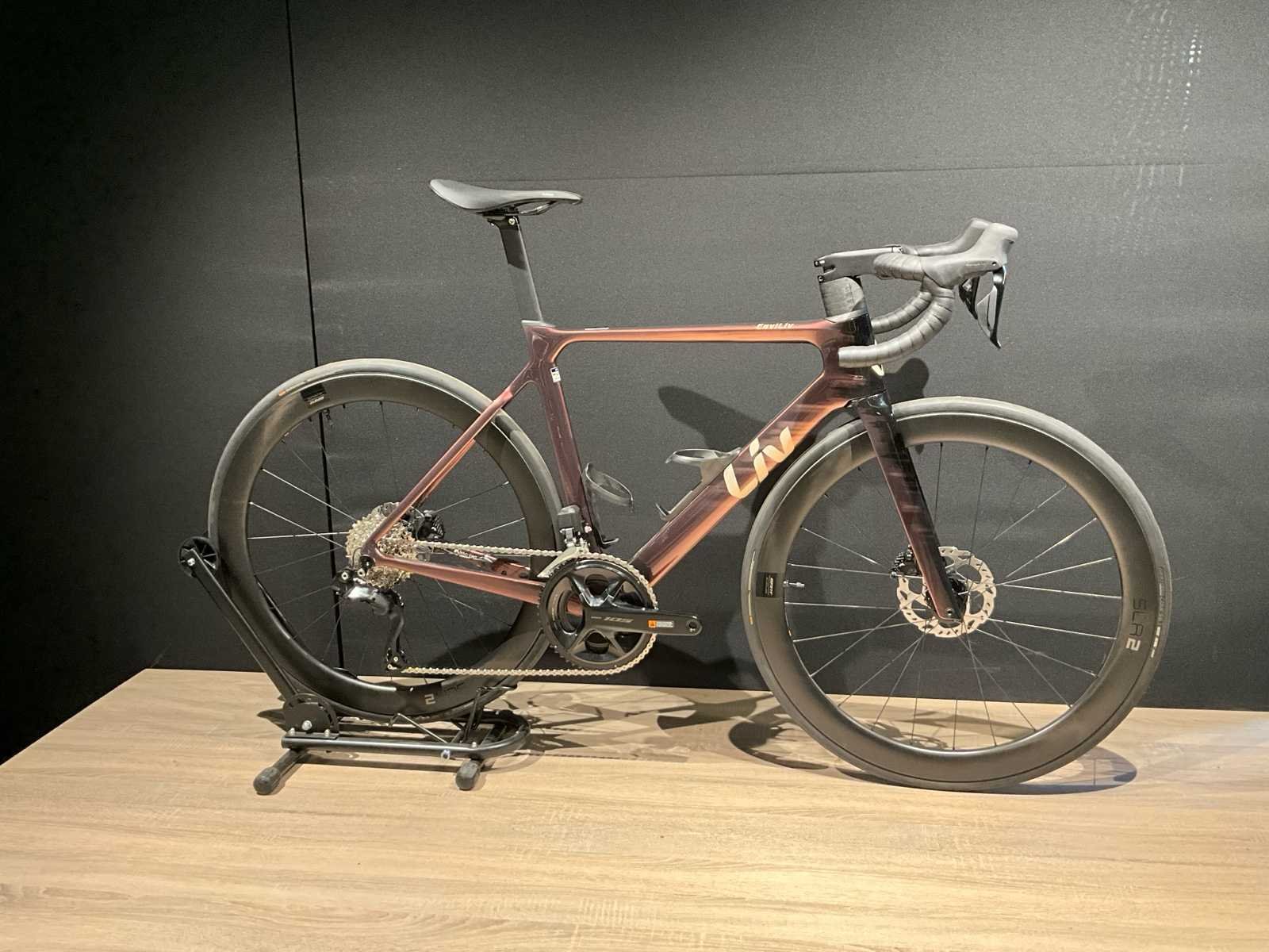 Nieuw en gemonteerd. Carbon frame / Shimano 105 di2 2x12sp / Carbon wielset SLR2 / Disc / Maat Small Zie foto’s voor meer details. No Merk: LIV Model: EnviLiv Advanced 1 S Mechanic Rose