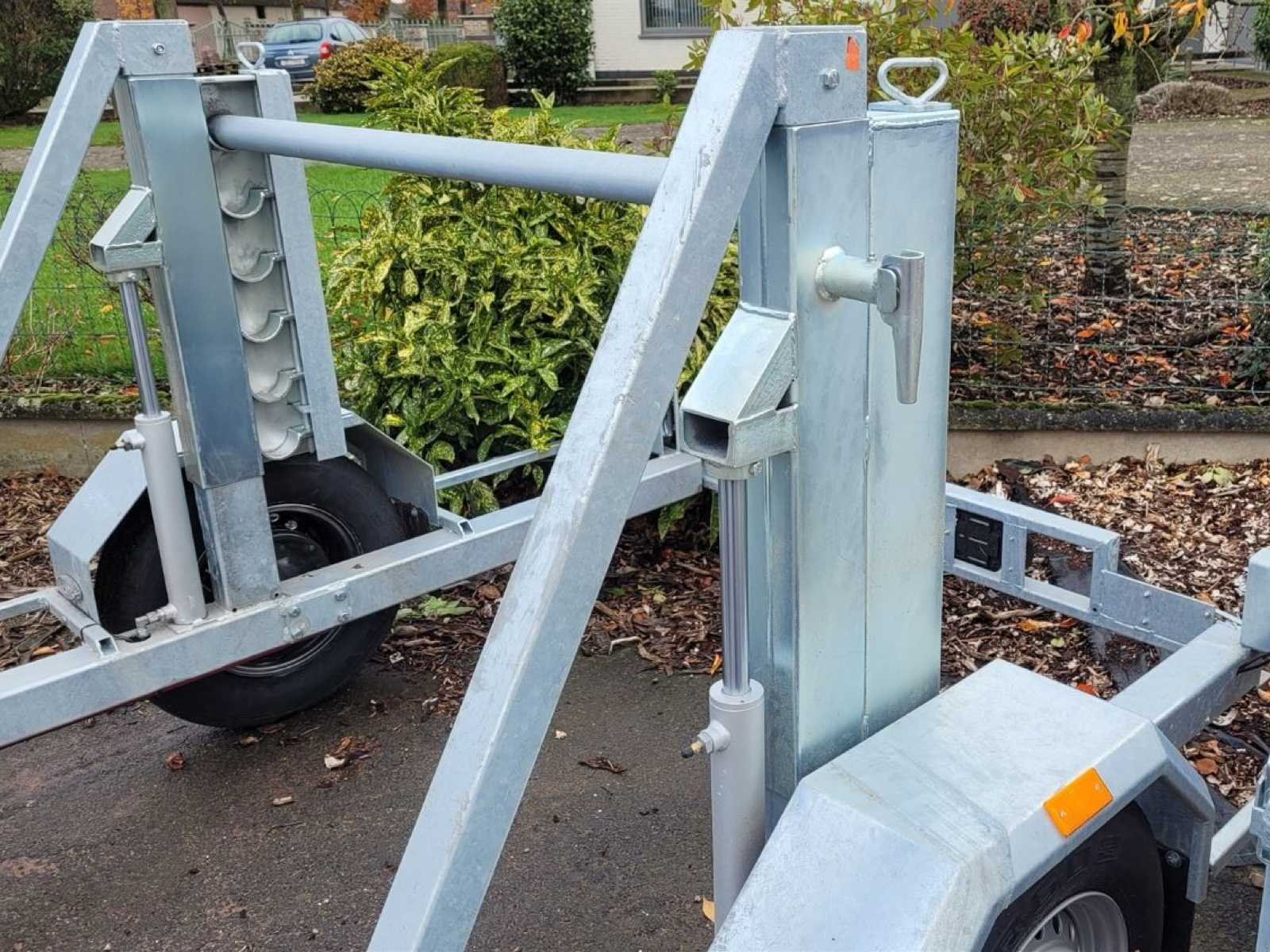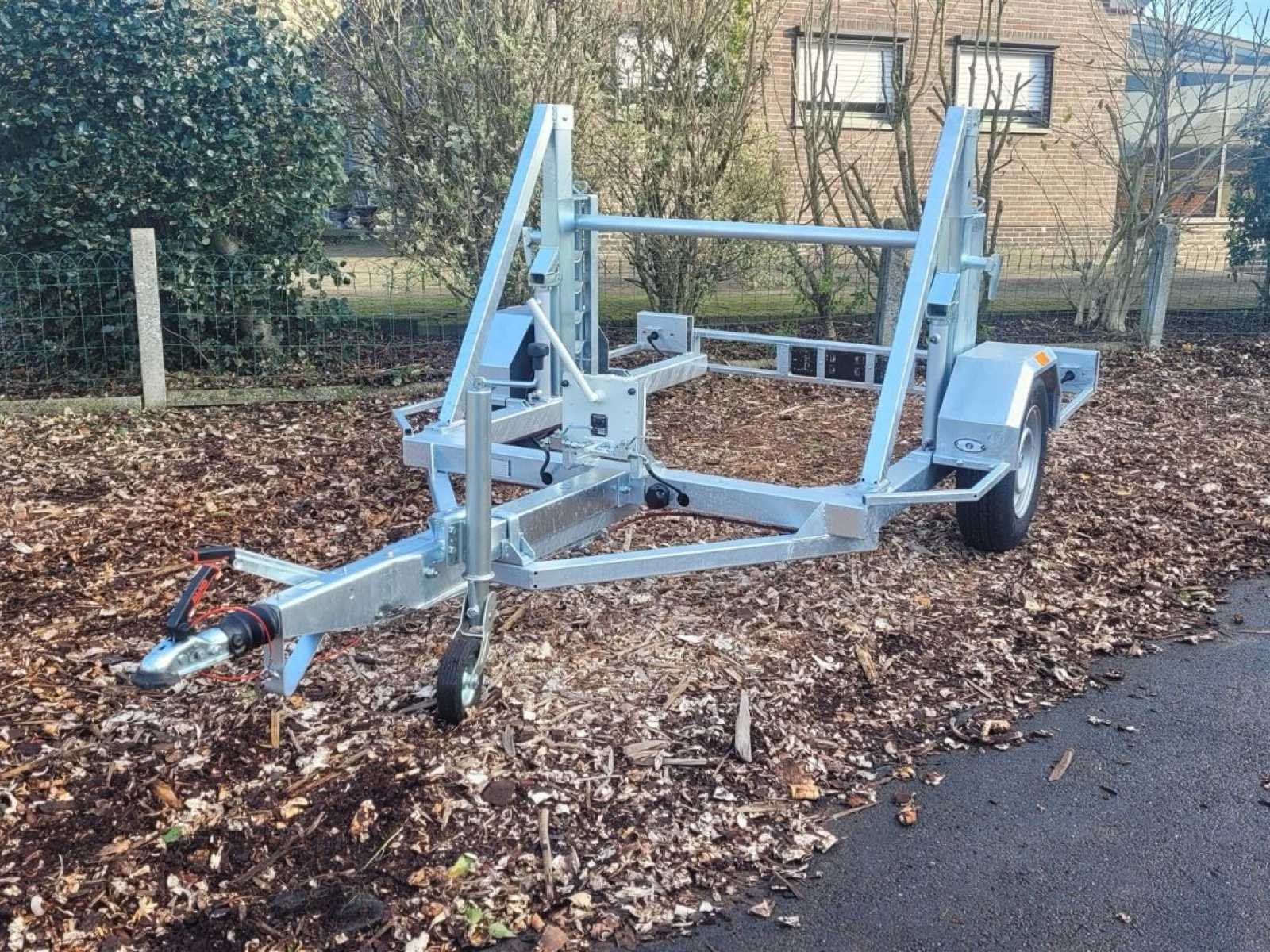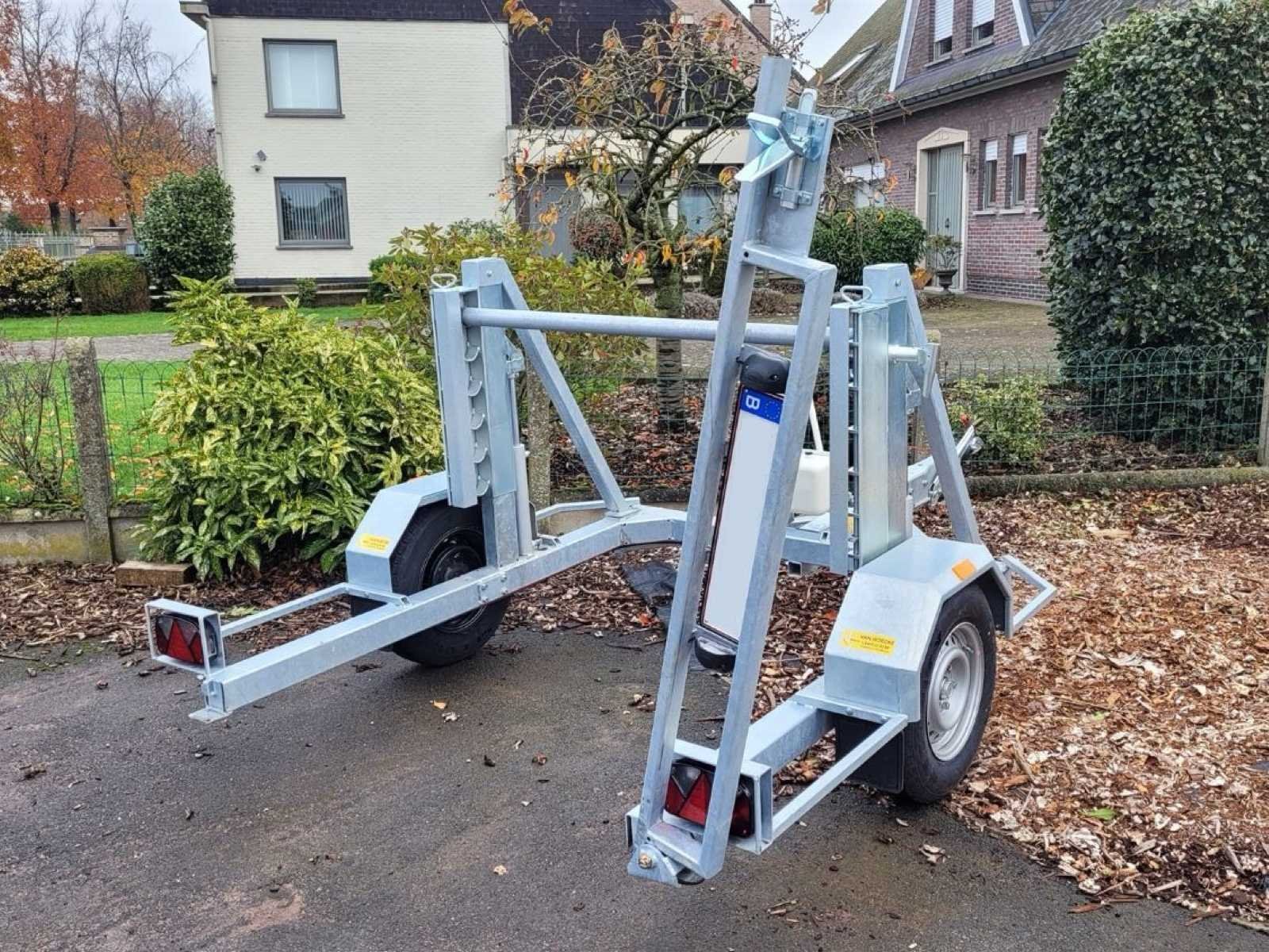 Nieuw! -Stalen as buis Ø60mm -Lichtbalk opent aan de achterzijde om de haspel eenvoudig te laden -Handbediend -2 Enkelwerkende hydraulische cilinders -Volledig warmbad verzinkt chassis -Banden 185R14C stalen velg kleur grijs -Stalen spatborden -13-polige stekker met wettelijke verlichting -Opklapbaar neuswiel -Kogelkoppeling Ø50mm -Handrem -Milieubijdrage cat. 300 per band van 8" t/m 20" type C banden inbegrepen -Max. diameter haspel: 260CM -Max. Breedte haspel: 168CM -COC attest inbegrepen -Vignet E705 inbegrepen -Preregistratie inbegrepen -Keuring niet inbegrepen No Type: MTM 1800KG geremde enkelasser Bouwjaar: 2023 Chassisnummer: XL9HW180023108382 Aantal assen: 1 Ledig gewicht: 340kg Laadvermogen: 1460kg