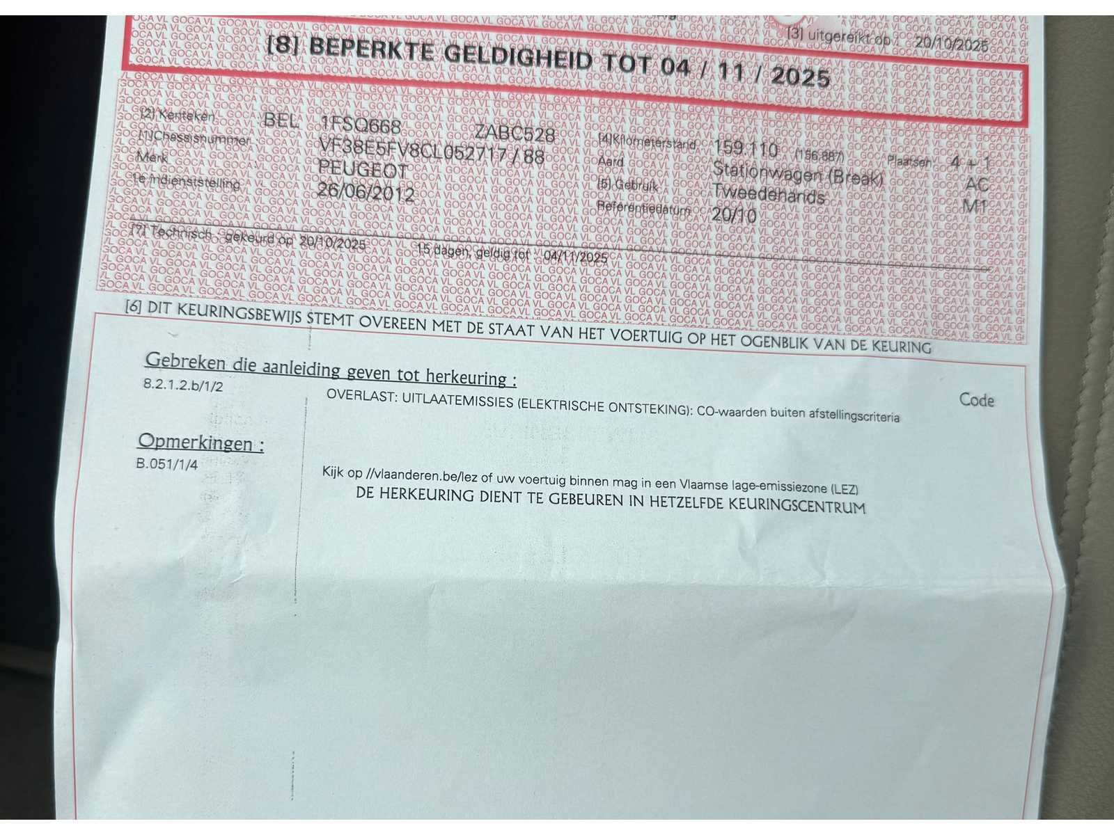 Opties: panoramisch dak, JBL geluidsinstallatie, bluetooth, headsup, navigatie, airco, zetelverwarming. Nee Merk: Peugeot Model: 508 SW Bouwjaar: 2012 Afgelezen kilometerstand: 159060km Cilinderinhoud: 1596cc Vermogen (kW): 115kW Brandstof: benzine Chassisnummer: VF38E5FFV8CL052717 Datum eerste toelating: 26/06/2012 Transmissie: Handgeschakeld Aantal sleutels: 2 Nationaliteit documenten: Belgisch Start en rijdt: Ja startinformatie : Start en rijdt Inschrijvingsbewijs - deel 1 : Aanwezig Inschrijvingsbewijs - deel 2: Aanwezig