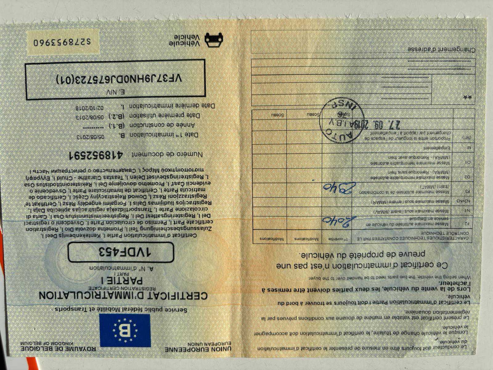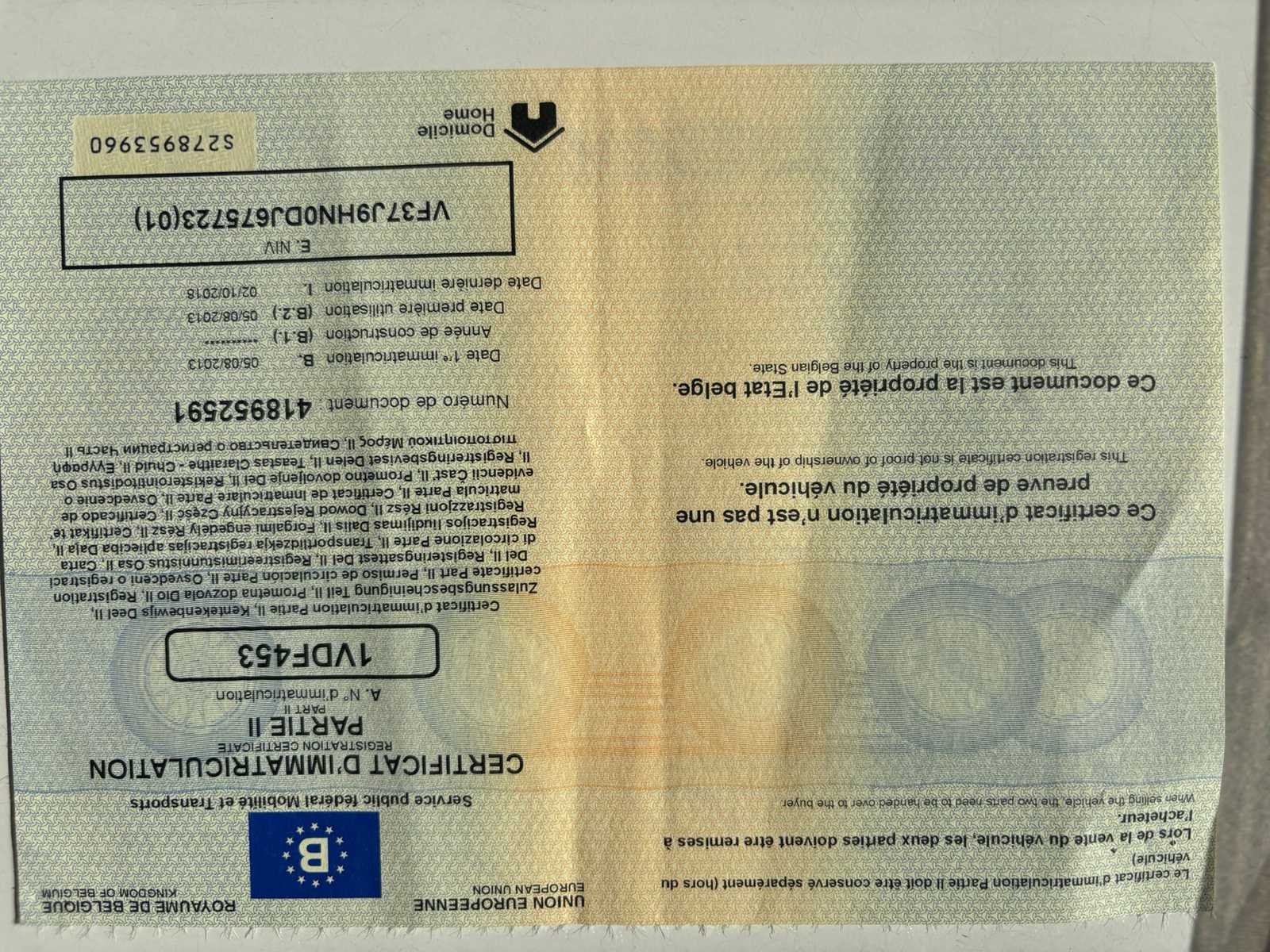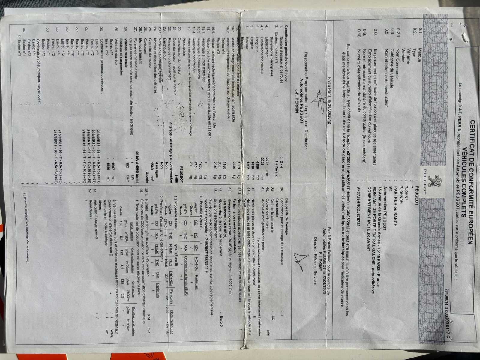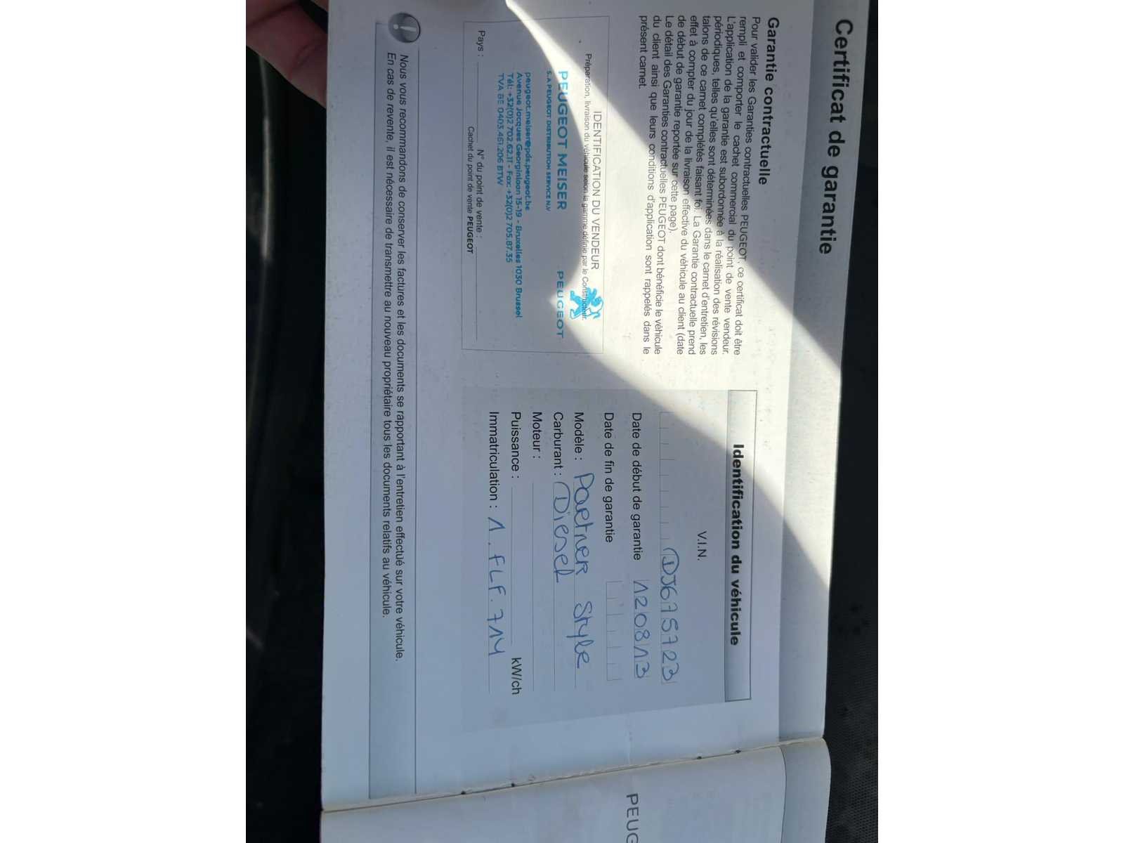 Nee Merk: Peugeot Model: Partner Bouwjaar: 2013 Afgelezen kilometerstand: 279239km Cilinderinhoud: 1560cc Vermogen (kW): 55kW Brandstof: diesel Datum eerste toelating: 05/08/2013 Nationaliteit documenten: Belgisch Start en rijdt: Ja startinformatie : Start en rijdt Inschrijvingsbewijs - deel 1 : Aanwezig Inschrijvingsbewijs - deel 2: Aanwezig