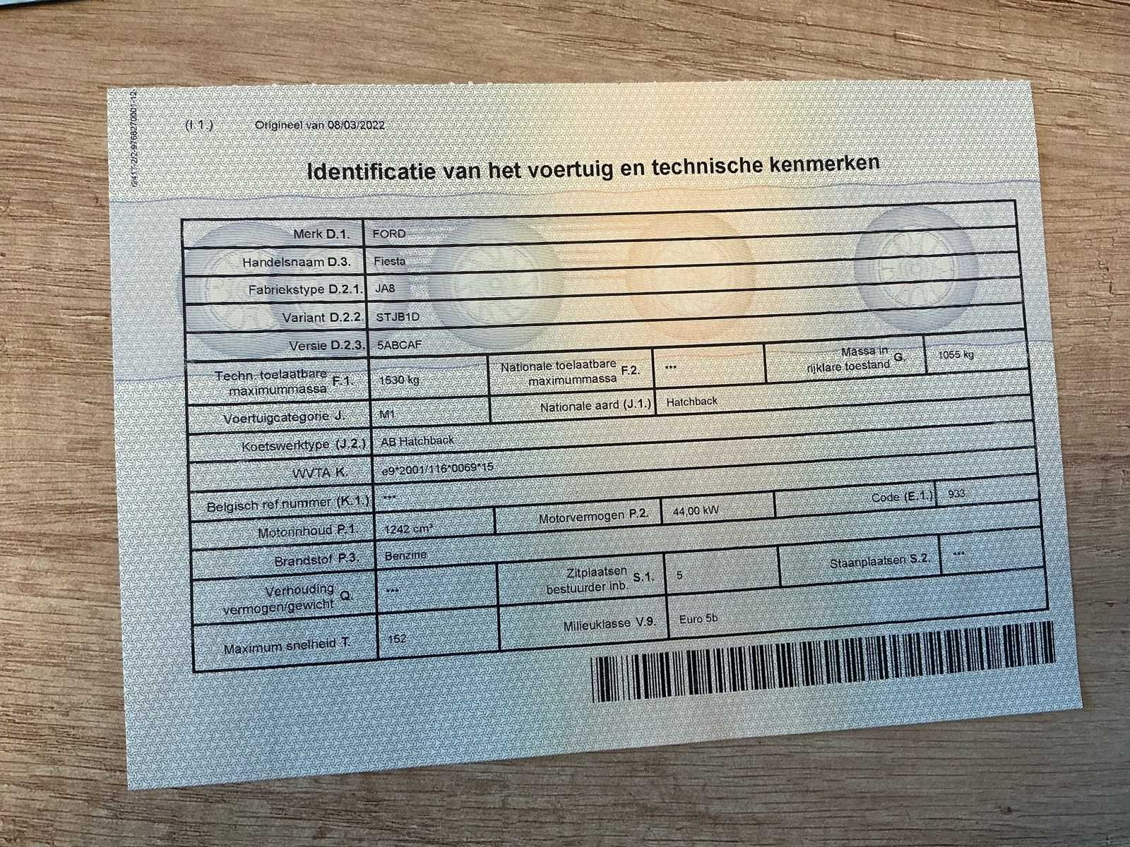 Hierbij is de ABS module te vervangen. Start en rijdt. No Merk: Ford Model: Fiesta Type: Hatchback Bouwjaar: 2014 Afgelezen kilometerstand: 252741km Cilinderinhoud: 998cc Vermogen (kW): 44kW Brandstof: Benzine Chassisnummer: WF0DXXGAKDET12956(01) Datum eerste toelating: 19/05/2014 Vermogen (pk): 100hp Energielabel: A Aandrijving: Voorwielaandrijving Aantal zitplaatsen: 5 Kleur: Grijs Transmissie: Handgeschakeld Stuurwiel: Links Emissieklasse: Euro 5b Aantal deuren: 5 Aantal sleutels: 2 Ledig gewicht: 1055kg Aantal cilinders: 3 Nationaliteit documenten: België Start en rijdt: Ja startinformatie : Ok Zichtbare schade: Krasjes Airconditioning: true Inschrijvingsbewijs - deel 1 : Aanwezig Inschrijvingsbewijs - deel 2: Aanwezig