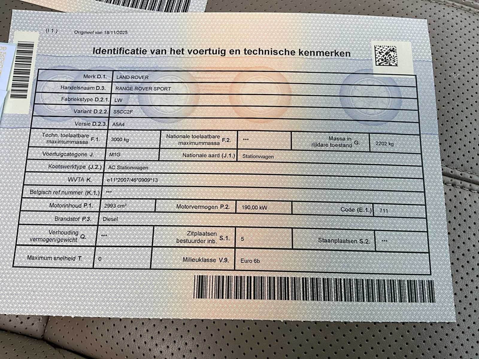 Nee Merk: Land Rover Model: Range Type: Sport Bouwjaar: 2017 Afgelezen kilometerstand: 179146km Cilinderinhoud: 1993cc Vermogen (kW): 190kW Brandstof: Diesel Chassisnummer: SALWA2FK8HA689828 Datum eerste toelating: 28/07/2017 Aantal zitplaatsen: 5 Transmissie: Automaat Emissieklasse: Euro 6b Aantal deuren: 5 Aantal sleutels: 2 Nationaliteit documenten: Belgsich Carpass: true Start en rijdt: Ja Keuringsrapport geldig tot: 13/11/2026 startinformatie : Start & rijdt Vavato voert geen technische keuring uit.: true Airconditioning: true Navigatie: true Xenon verlichting: true LED-koplampen: true Leder bekleed: true Inschrijvingsbewijs - deel 1 : Aanwezig Inschrijvingsbewijs - deel 2: Aanwezig