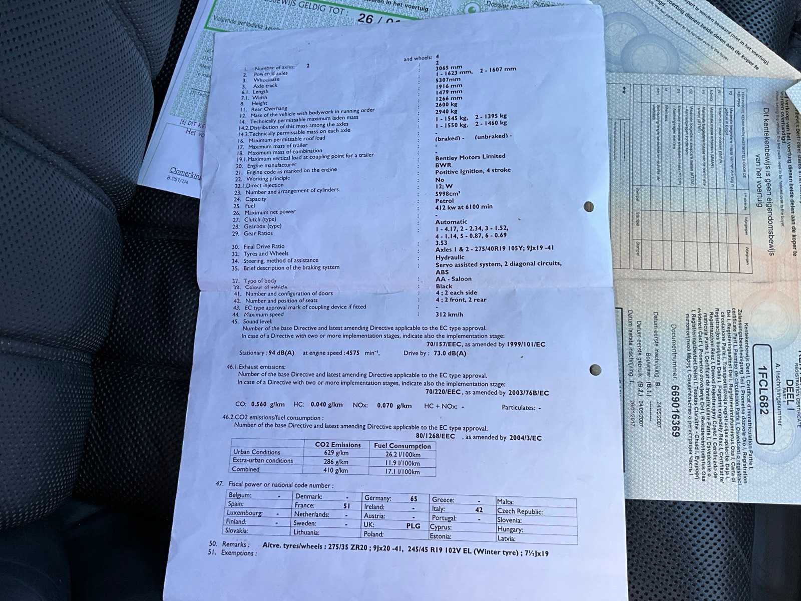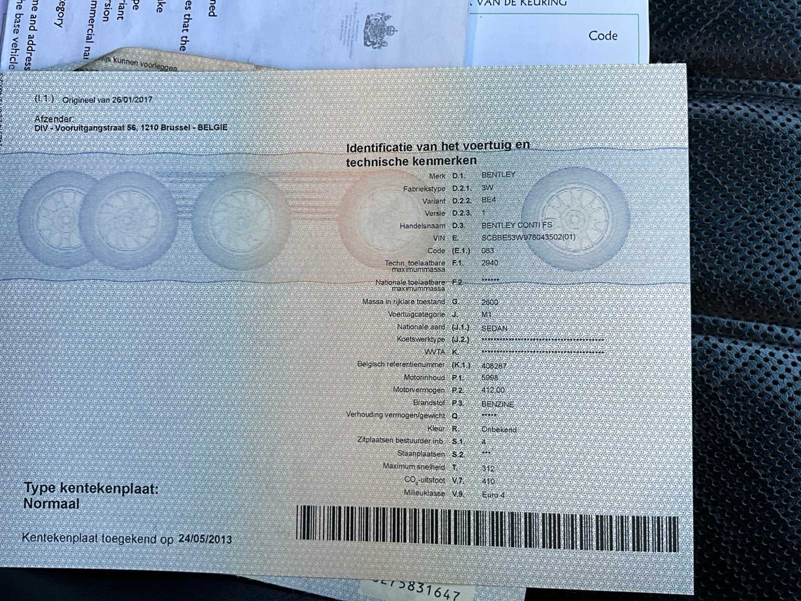No Merk: Bentley Model: Continental Type: FS Bouwjaar: 2007 Afgelezen kilometerstand: 248925km Cilinderinhoud: 5998cc Vermogen (kW): 412kW Brandstof: Benzine Chassisnummer: SCBBE53W978043502 Datum eerste toelating: 24/05/2007 Aantal zitplaatsen: 4 Transmissie: Automaat Emissieklasse: Euro 4 Aantal deuren: 5 Aantal sleutels: 2 Nationaliteit documenten: Belgisch Start en rijdt: Ja Keuringsrapport geldig tot: 26/01/2026 startinformatie : Start & rijdt Vavato voert geen technische keuring uit.: true Airconditioning: true Navigatie: true Leder bekleed: true Inschrijvingsbewijs - deel 1 : Aanwezig Inschrijvingsbewijs - deel 2: Aanwezig
