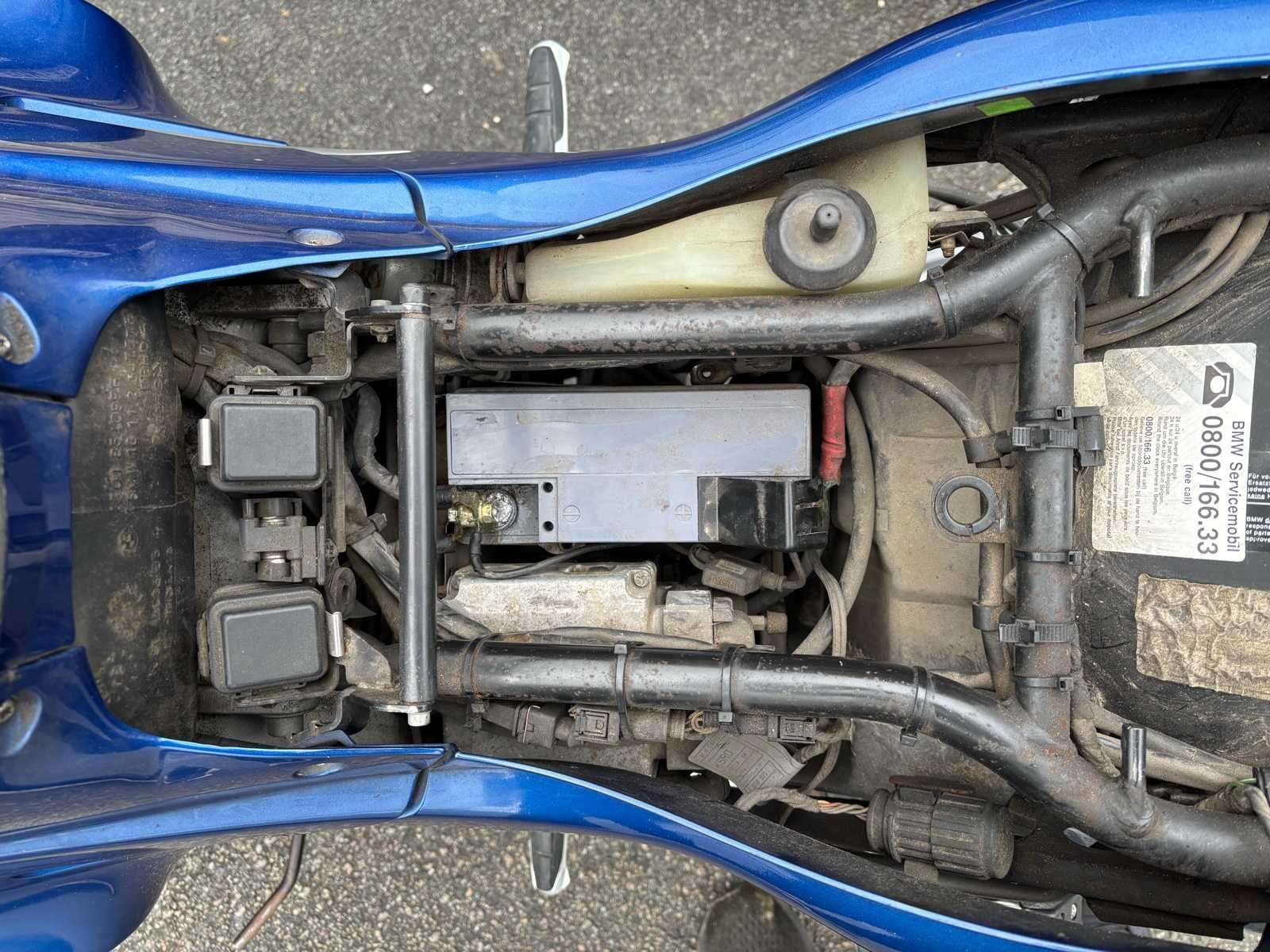 - Heeft vorig jaar zijn groot onderhoud gekregen en werd voorzien van 2 nieuwe banden! - Windscherm handmatig verstelbaar in hoogte. - Voorzien van werkende handvat verwarming. - Pinkend ABS lampje is standaard bij opstart, dit verdwijnt vanaf de motor in beweging komt. No Merk: BMW Model: K1200 RS Brandstof: Benzine Chassisnummer: WB10547A12ZG28185 Cilinderinhoud: 1171cc Datum eerste toelating: 19/07/2002 Gewicht: 271kg Vermogen (kW): 96kW Kleur: Blauw Afgelezen kilometerstand: 114768km Nationaliteit documenten: BE Aantal sleutels: 1 Boorddocumenten aanwezig?: true Startinformatie: Start, rijdt, remt & onderhoud gekregen in 2025 Bouwjaar: 2002