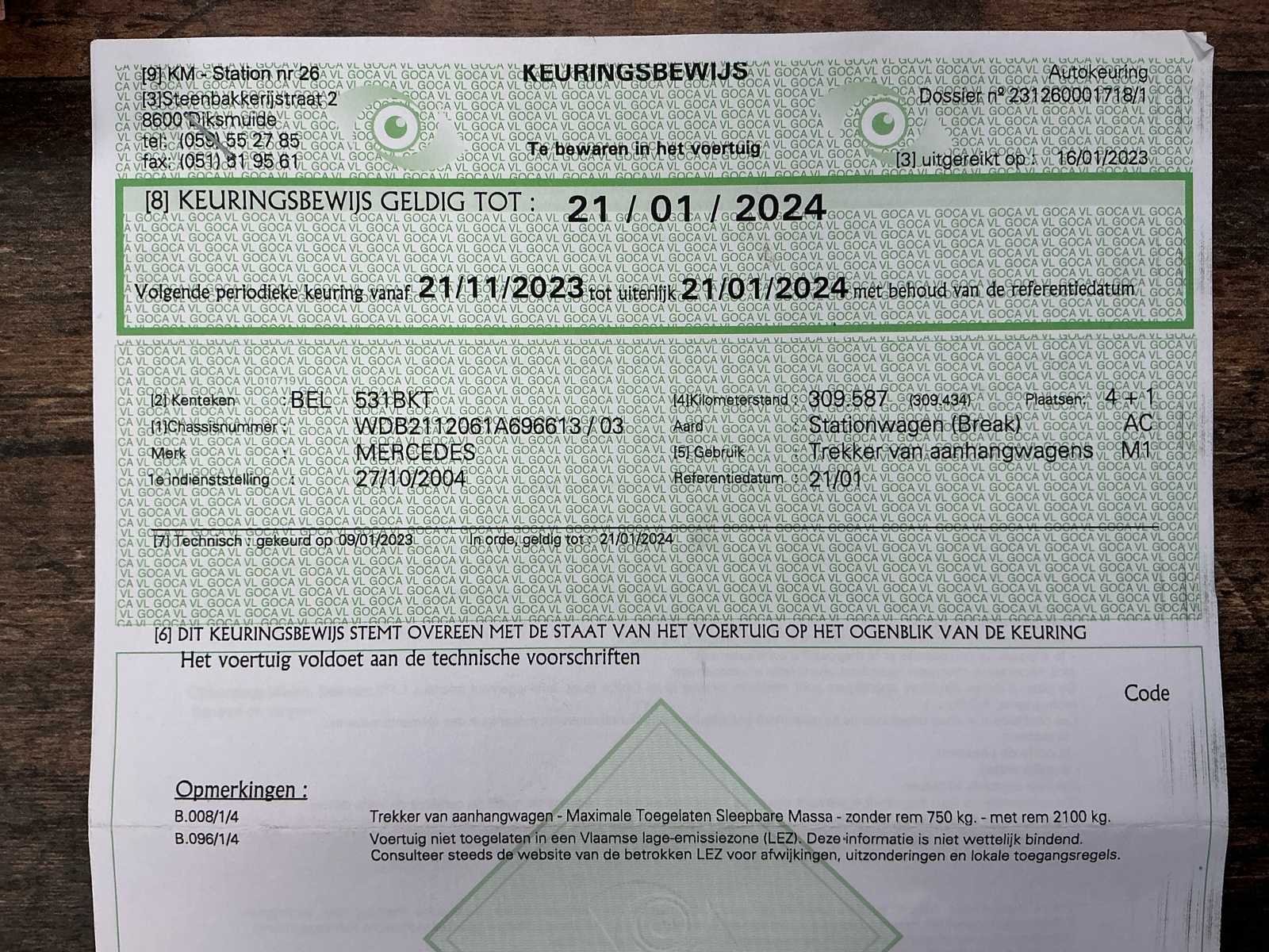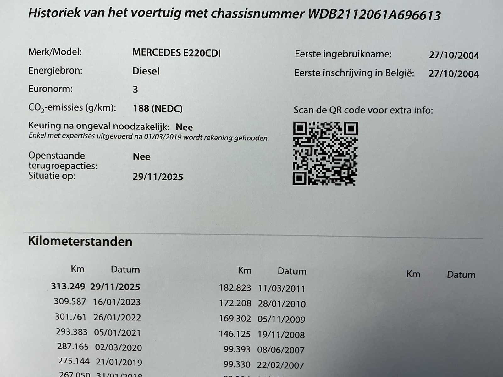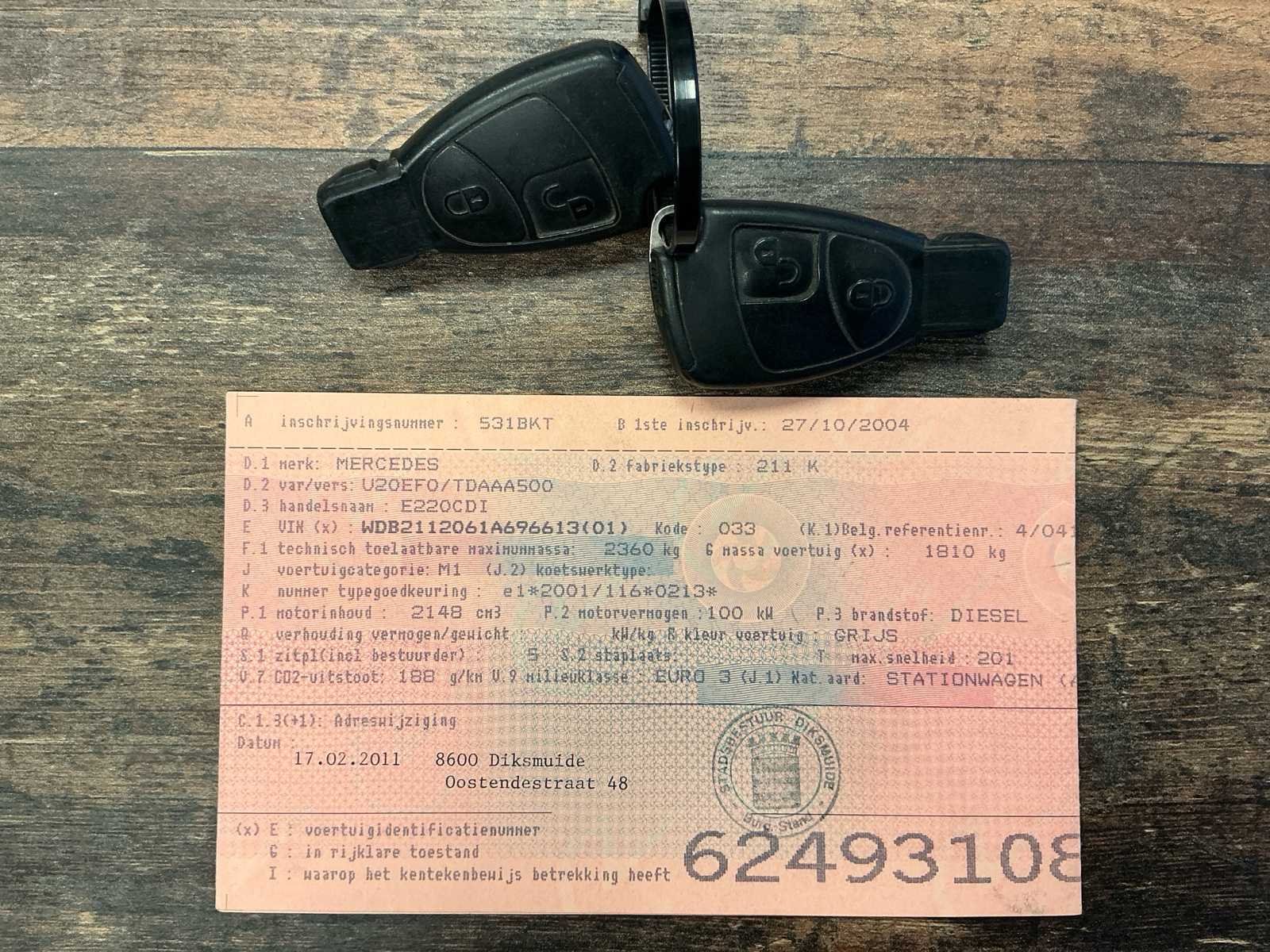 Voorzien van afneembare trekhaak! Wagen heeft 2 jaar stilgestaan. Hierdoor heeft de versnellingsbak een groot nazicht nodig. De P , N , R zijn werkend, maar gaat enkel in 1e versnelling vooruit. (Schakelt niet meer door naar hogere versnelling!) Motorlampje en ABS lampje branden: Uitgelezen melding = Storing versnellingsbak. Verder geen foutmeldingen! Aan te tonen bij de verkoper! No Merk: Mercedes Model: E220 CDI Bouwjaar: 2004 Afgelezen kilometerstand: 313253km Cilinderinhoud: 2148cc Vermogen (kW): 100kW Brandstof: Diesela Datum eerste toelating: 27/10/2004 Aandrijving: Achterwiel Aantal zitplaatsen: 5 Maximaal trekgewicht ongeremd: 750kg Maximaal trekgewicht geremd: 2100kg Transmissie: Automaat Stuurwiel: Links Emissieklasse: Euro 3 Aantal deuren: 5 Aantal sleutels: 2 Ledig gewicht: 1810kg Carrosserie: Stationwagen Nationaliteit documenten: BE CO2-uitstoot NEDC: 188 Gelijkvormigheidsattest aanwezig: true Carpass: true Start en rijdt: Ja Keuringsrapport geldig tot: 21/01/2024 startinformatie : Start, rijdt, remt maar versnellingsbak na te kijken! (Zie info) Zichtbare schade: Zie fotos Vavato voert geen technische keuring uit.: true Airconditioning: true Navigatie: true Leder bekleed: true Inschrijvingsbewijs - deel 1 : Ok Inschrijvingsbewijs - deel 2: OK