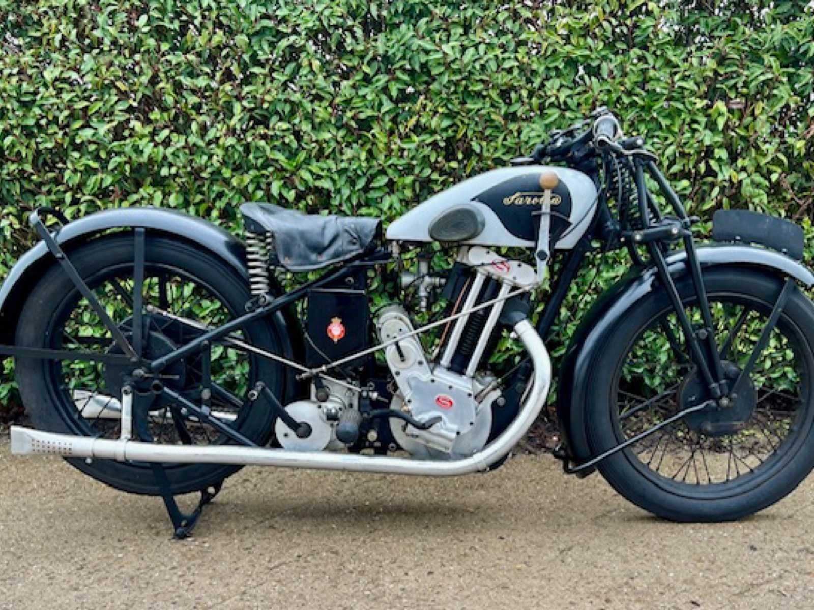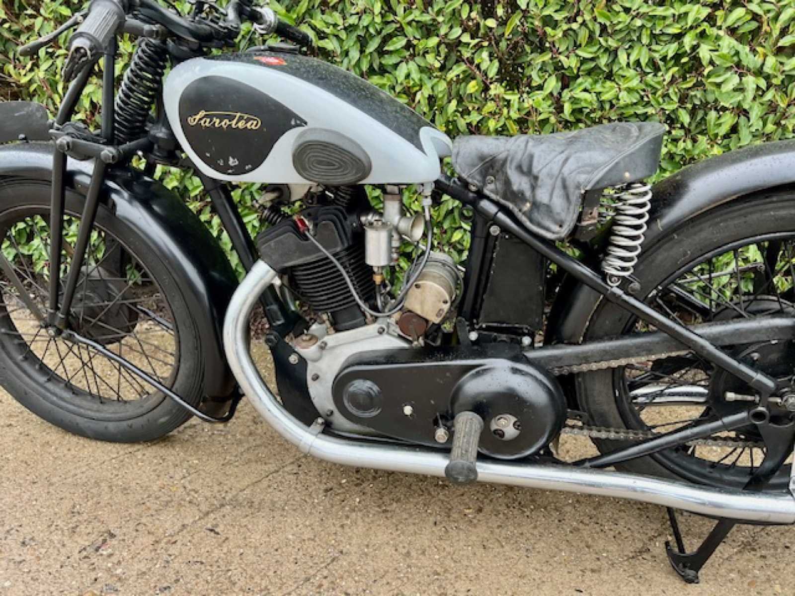 Belgische Saroléa 32S met racing versnellingsbak. Dit een een 500cc kopklepper sport model van 1932. Sportieve snelle motorfiets. Toen kon men als optie de racing versnellingsbak kopen waardoor deze nog sportiever was om te rijden door zijn lange eerste versnelling. Tank is ook de Racing benzinetank die als optie is gekocht. Motor is gereviseerd met allemaal NOS onderdelen en er zit een racing nokkenas in. Start en loopt zeer mooi. Is nu volledig nagezien en klaar om te rijden. No Merk: 1932 Sarolea Model: 32S Cilinderinhoud: 500cc Startinformatie: Start en rijdt Bouwjaar: 1932