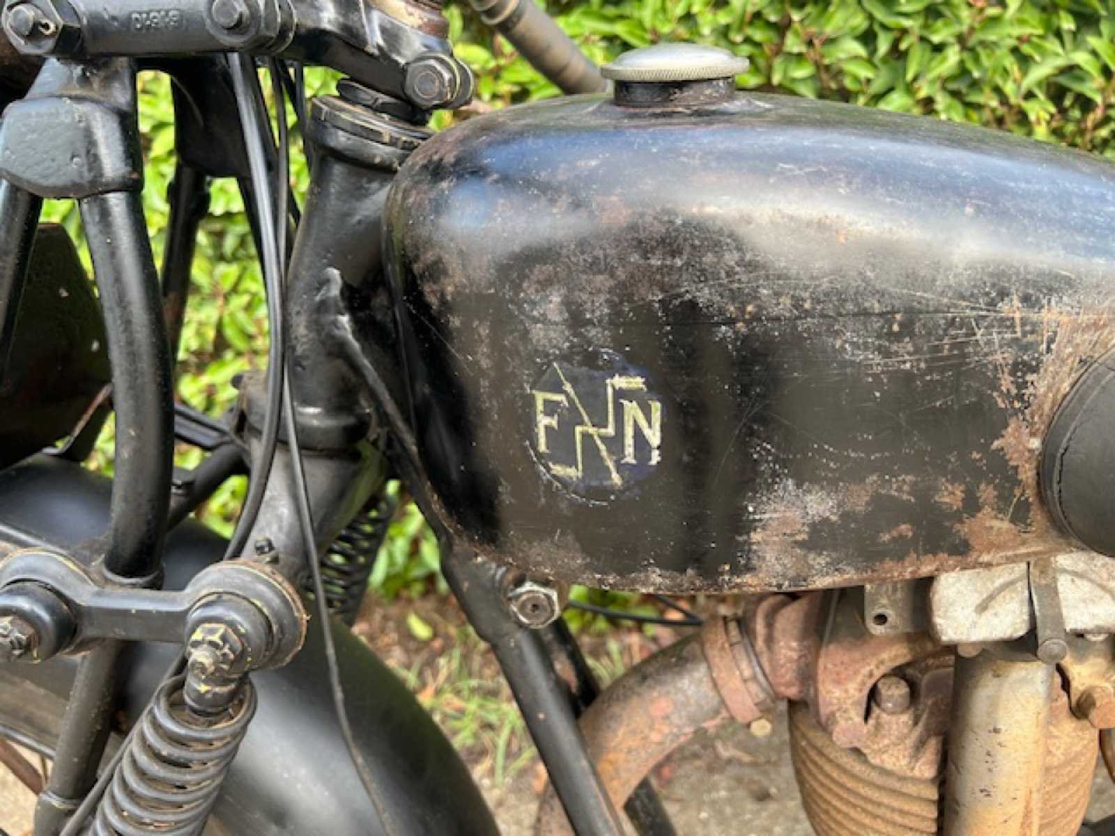 Belgische FN model M67D. Dit is een 500cc kopklepper van 1930 in originele ongerestaureerde staat. Magneto is enkele jaren geleden (factuur is erbij) gereviseerd en toen hebben ze de motorfiets opgestart om te verkopen. Dus met een beetje onderhoud en nazicht is deze terug rijdend. Motorfiets heeft Franse papieren. Motorfiets is origineel geleverd op 29/05/1931 aan Neuilly in Frankrijk (invoerder van FN in Frankrijk). No Merk: 1931 FN Model: M67D Cilinderinhoud: 500cc Bouwjaar: 1931