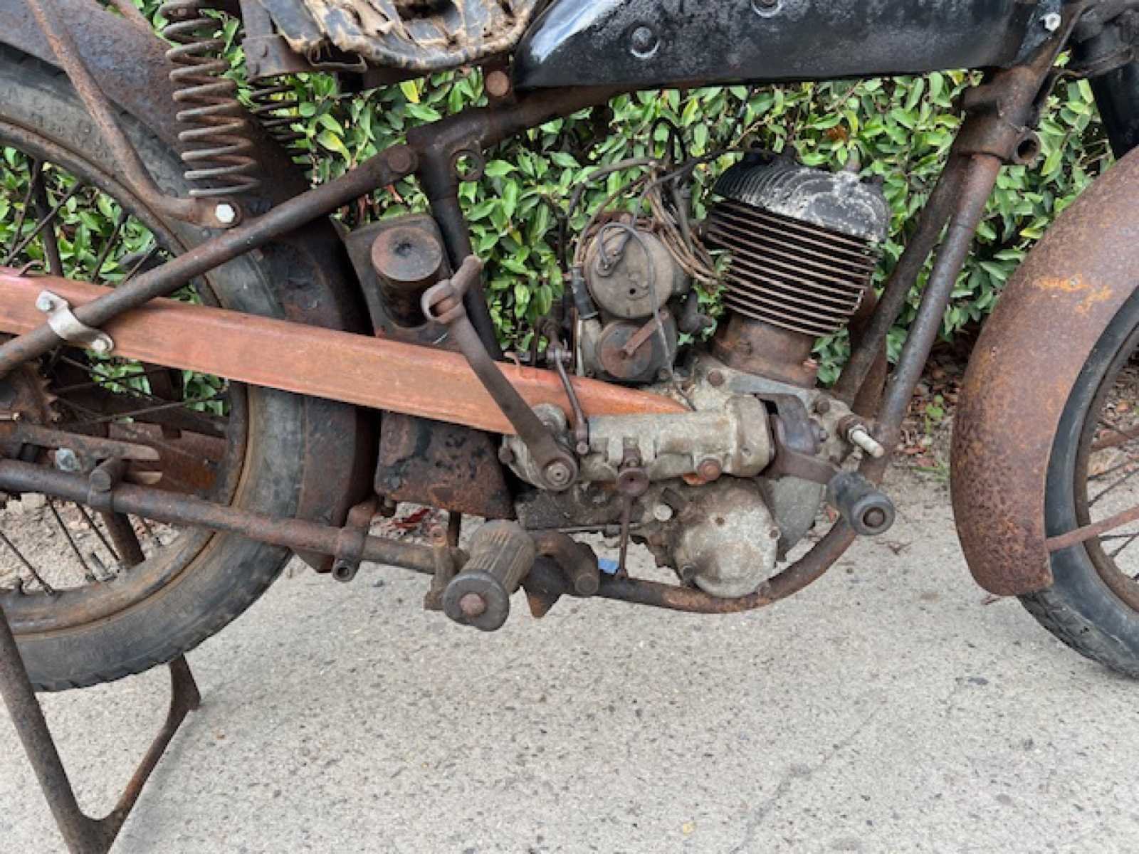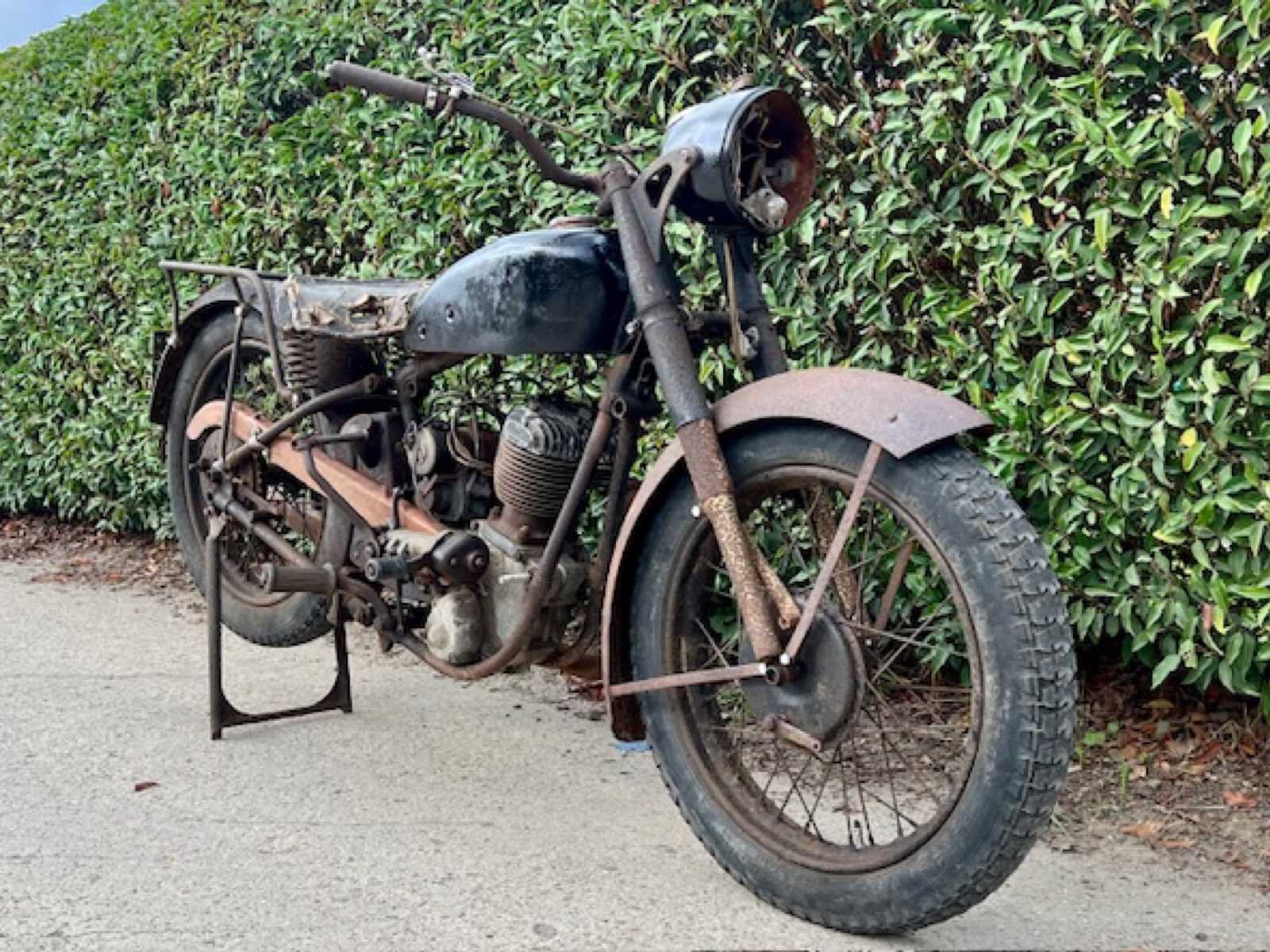 Belgische Gillet model Confort 400cc van 1934. Mooi winterproject om te restaureren. Voorvork is ooit gemoderniseerd met een telescoop vork zoals zoveel gebeurde na de oorlog. No Merk: 1934 Gillet Model: Confort Cilinderinhoud: 400cc Bouwjaar: 1934