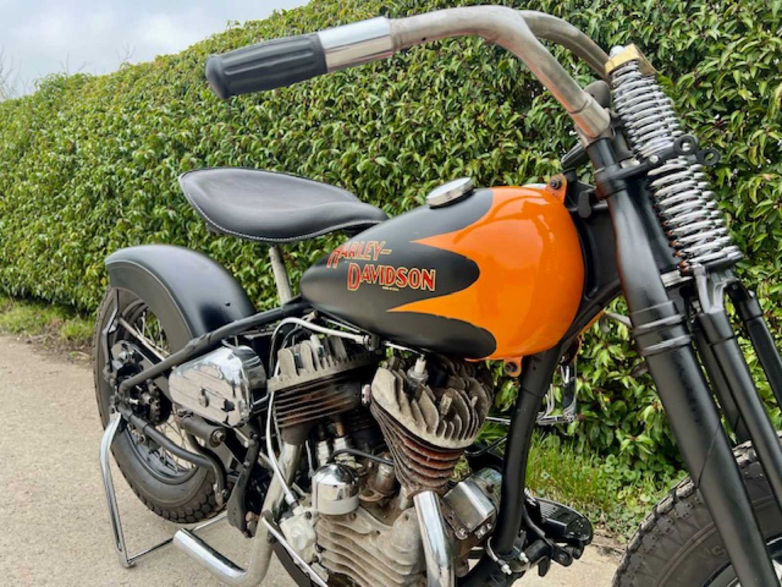 Beach racer project. Amerikaanse Harley-Davidson model WL van 1942. Dit is een 750cc zijklepper V-twin. Dit is een mock-up om te laten zien wat er allemaal aanwezig is of mist. Motor en versnellingsbak moet volledig gereviseerd worden en is niet compleet maar alles is hier makkelijk van te koop (kan de verkoper ook leveren eventueel). Rijwielgedeelte is in perfecte staat (vele nieuwe onderdelen). Speciaal aan deze motorfiets is de 2"over voorvork, voorvork stabilisator, Hollywood stuur, voorrem koeling adaptor,... No Merk: 1942 Harley-Davidson Model: 42WL Cilinderinhoud: 750cc