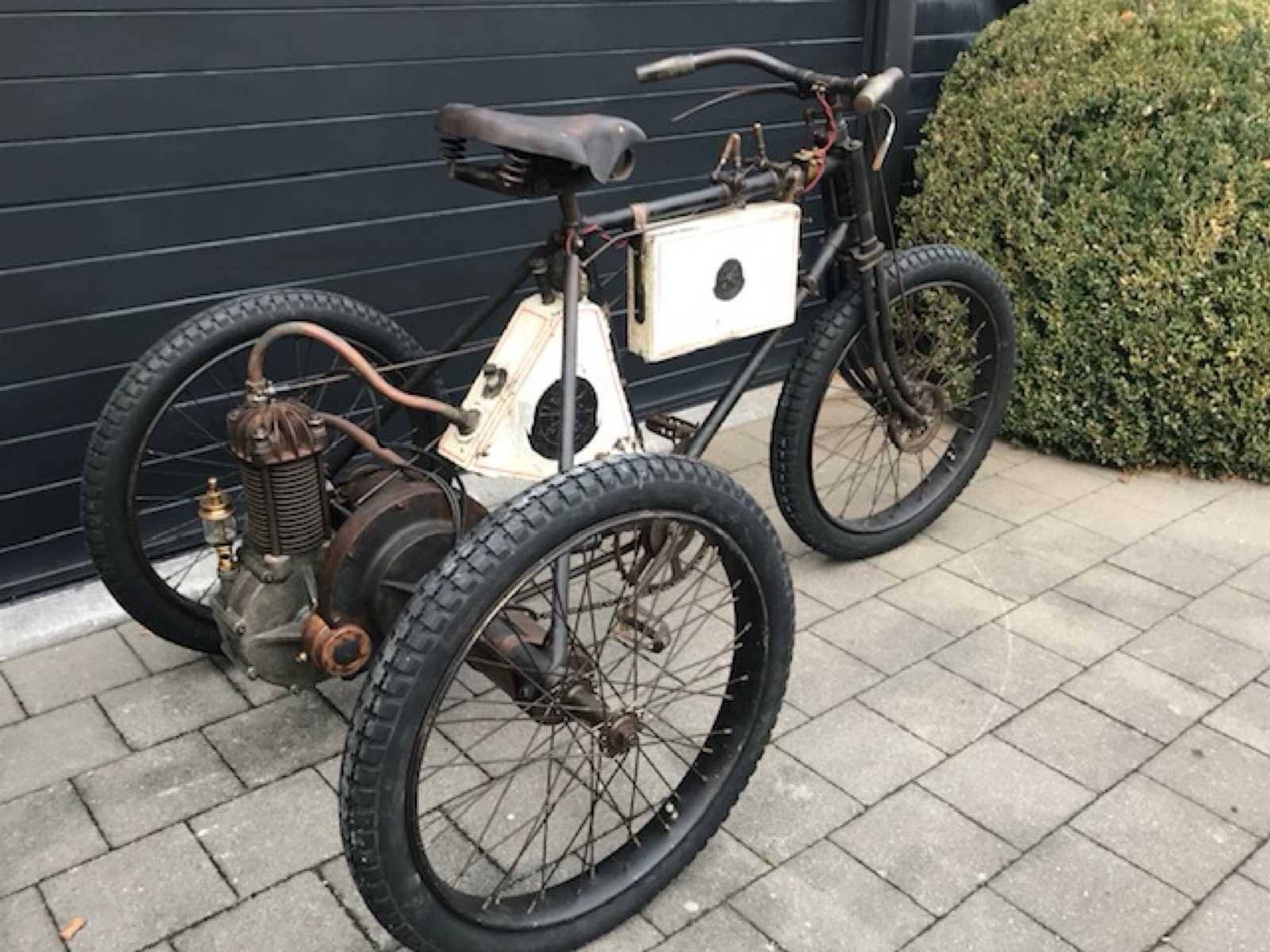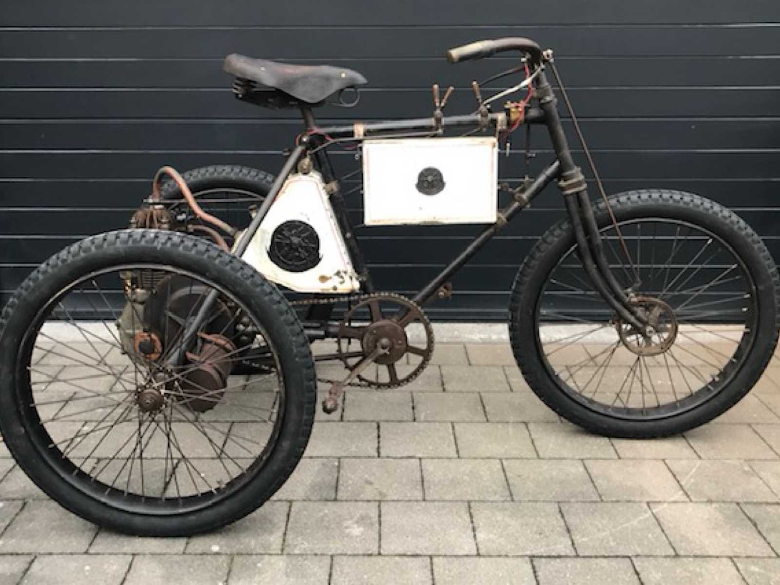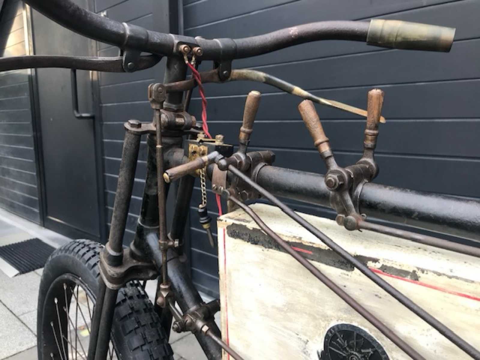 Mooi originele Race tricycle in werkende staat. Zeer zeldzame Franse Phébus tricycle Spécial De Course van 1898. Het Bedrijf Noé Boyer & Cie uit Suresnes in Frankrijk behoorde tot de Société Gladiator en begon in 1898 naast de eigen autoproductie met de productie van auto's tricycles en Quadricycles onder de merknaam Phébus . De productie eindigde in 1903. In Engeland was de merknaam Automobilette. Eind 1800 begin 1900 kwamen auto's en motorfietsen enorm in trek bij de rijkere bevolking. Zeker de tricycles (3-wielers) en quadricycles (4-wielers) waren enorm in trek. Er werden zeer vele wedstrijden georganiseerd tot wel 1500km afstand. Deze tricycle heeft de speciale voorrem voor race en heeft het grote tandwiel vooraan om snelheid te maken. Hierdoor is er een speciale bevestiging van de opervlakte carburateur die hoger is gemonteerd. Motor is een Dion de Bouton. Volledig nagezien en in werkende staat op modernere carburator. Opervlakte carburateur is compleet en origineel maar moet nog nagezien worden. No Merk: 1898 Model: Phébus Startinformatie: Volledig nagezien en in werkende staat op modernere carburator. Chassisnummer niet afleesbaar: true Bouwjaar: 1898