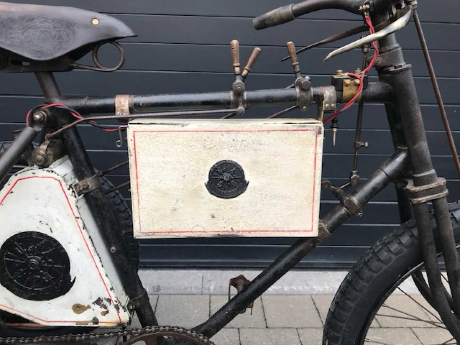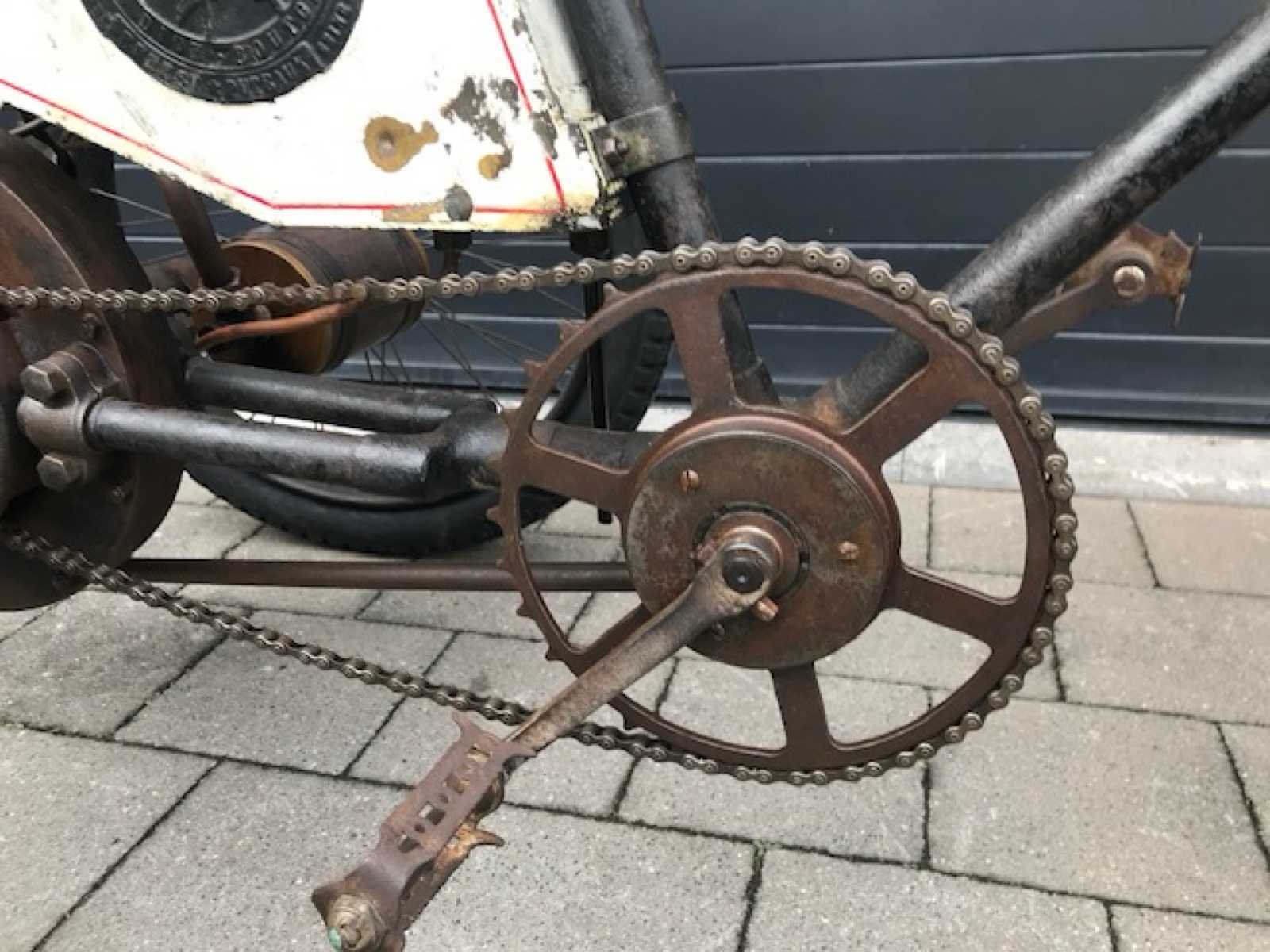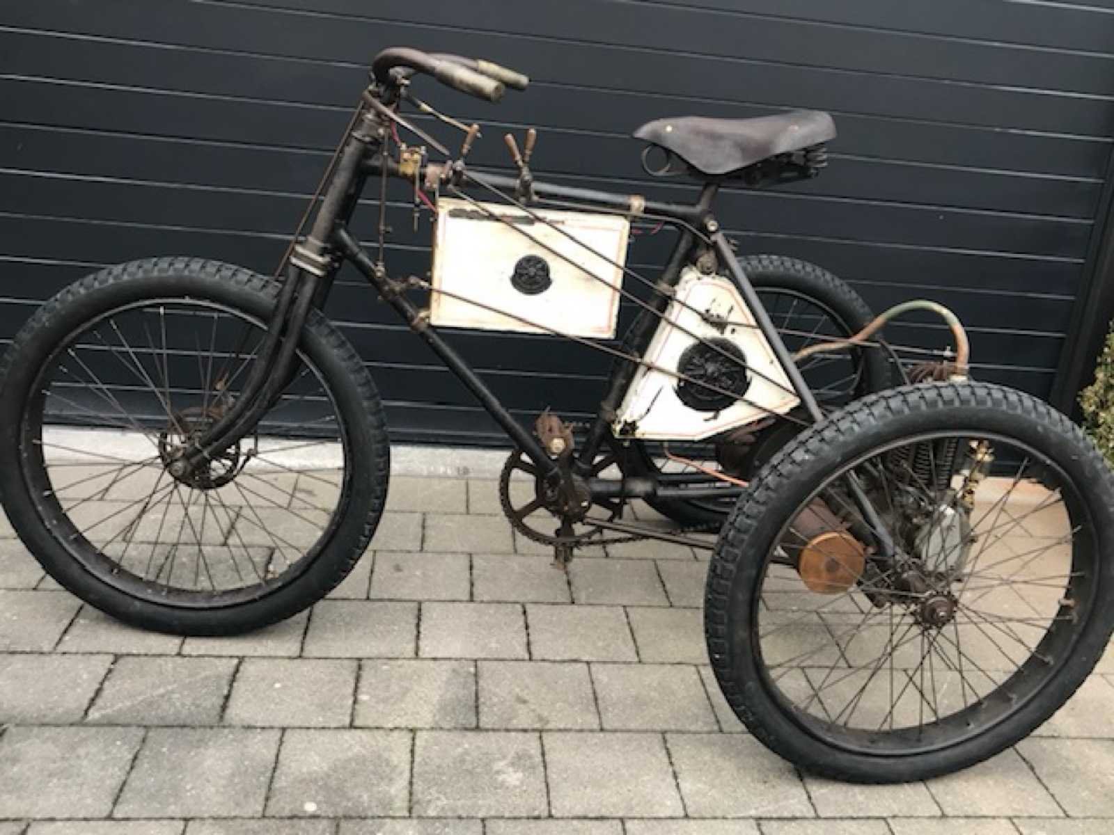Mooi originele Race tricycle in werkende staat. Zeer zeldzame Franse Phébus tricycle Spécial De Course van 1898. Het Bedrijf Noé Boyer & Cie uit Suresnes in Frankrijk behoorde tot de Société Gladiator en begon in 1898 naast de eigen autoproductie met de productie van auto's tricycles en Quadricycles onder de merknaam Phébus . De productie eindigde in 1903. In Engeland was de merknaam Automobilette. Eind 1800 begin 1900 kwamen auto's en motorfietsen enorm in trek bij de rijkere bevolking. Zeker de tricycles (3-wielers) en quadricycles (4-wielers) waren enorm in trek. Er werden zeer vele wedstrijden georganiseerd tot wel 1500km afstand. Deze tricycle heeft de speciale voorrem voor race en heeft het grote tandwiel vooraan om snelheid te maken. Hierdoor is er een speciale bevestiging van de opervlakte carburateur die hoger is gemonteerd. Motor is een Dion de Bouton. Volledig nagezien en in werkende staat op modernere carburator. Opervlakte carburateur is compleet en origineel maar moet nog nagezien worden. No Merk: 1898 Model: Phébus Startinformatie: Volledig nagezien en in werkende staat op modernere carburator. Chassisnummer niet afleesbaar: true Bouwjaar: 1898