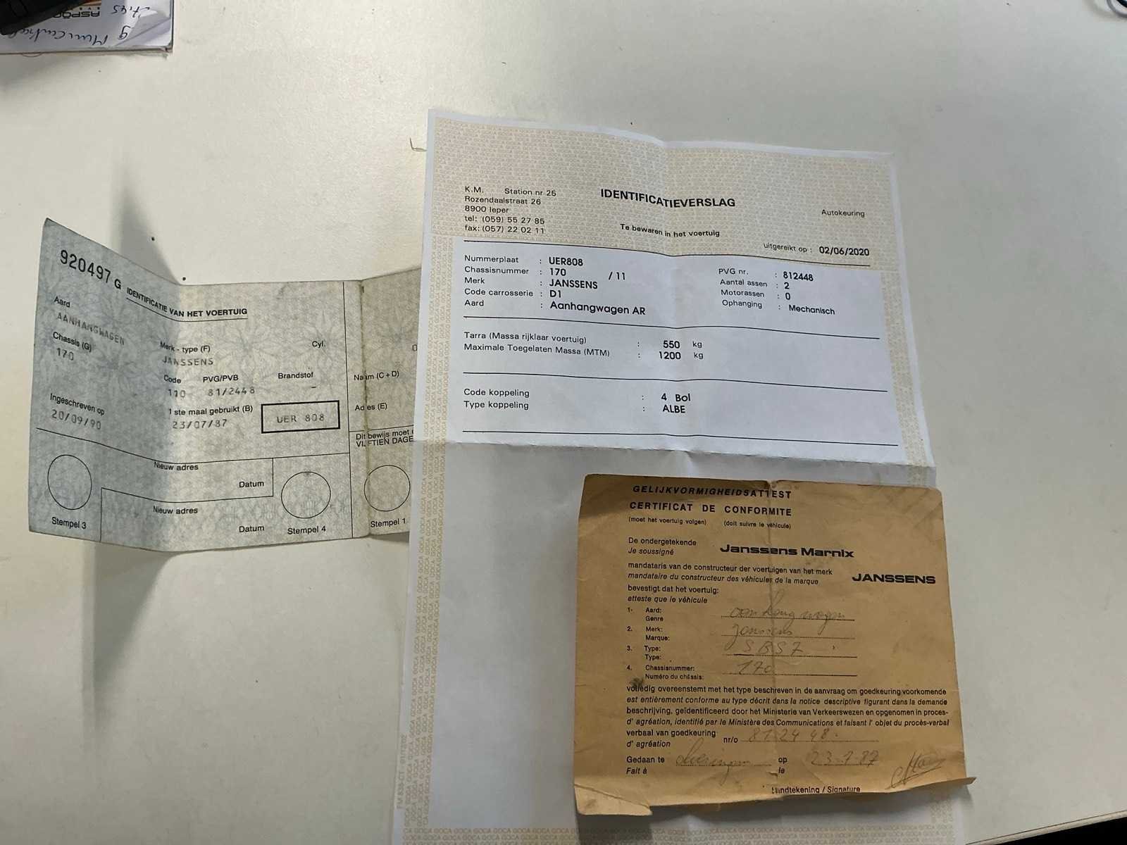 No Merk: Janssens Type: SBS7 Bouwjaar: 1987 Chassisnummer: 170 Aantal assen: 2 Datum eerste toelating: 23/07/1987 Nationaliteit documenten: Belgisch