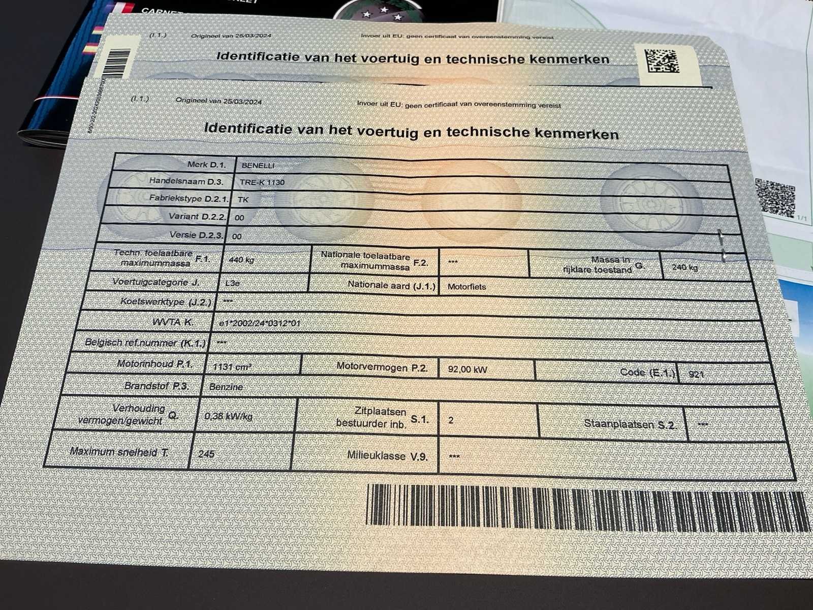Benelli TRE-K 1130 – Italiaanse krachtpatser met Andreani vering & Buffalo Slipstream koffers Aangeboden: een karaktervolle Benelli TRE-K 1130, de perfecte combinatie van sportiviteit en touringcomfort. Deze Italiaanse allroad/sporttourer wordt aangedreven door de indrukwekkende 1.130 cc driecilinder die bekendstaat om zijn unieke sound, sterke koppel en levendige vermogensopbouw. Dit exemplaar is uitgerust met hoogwaardige Andreani vering, wat zorgt voor verbeterde stabiliteit, strakkere feedback en optimaal rijcomfort – zowel op bochtige wegen als tijdens langere ritten. Daarnaast voorzien van Buffalo Slipstream Performance zijkoffers, ideaal voor reizen en dagelijkse bruikbaarheid zonder in te boeten op uitstraling. No Merk: Benelli Model: TRE-K 1130 Brandstof: Benzine Chassisnummer: ZBNTK00007P100205 Cilinderinhoud: 1131cc Datum eerste toelating: 02/03/2009 Gewicht: 240kg Vermogen (kW): 92kW Kleur: Zwart Afgelezen kilometerstand: 26838km Nationaliteit documenten: Belgisch Boorddocumenten aanwezig?: true Aantal sleutels: 2 No self drive export!: true