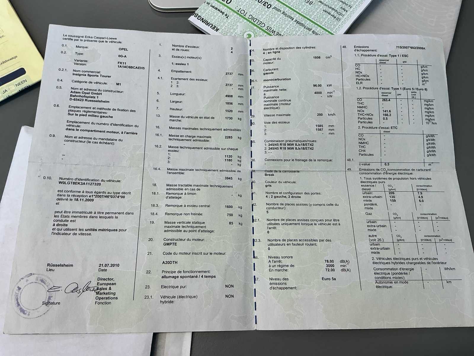 No Kenteken: 1FGC641 Merk: Opel Model: Insignia Type: 0G-1 Bouwjaar: 2010 Afgelezen kilometerstand: 165868km Cilinderinhoud: 1956cc Vermogen (kW): 96kW Brandstof: Diesel Chassisnummer: W0LGT8EK3A1127320 Datum eerste toelating: 03/08/2010 Aantal zitplaatsen: 5 Transmissie: Handgeschakeld Emissieklasse: Euro 5 Aantal sleutels: 2 Nationaliteit documenten: Belgische Start en rijdt: Ja Keuringsrapport geldig tot: 03/08/2024 Vavato voert geen technische keuring uit.: true