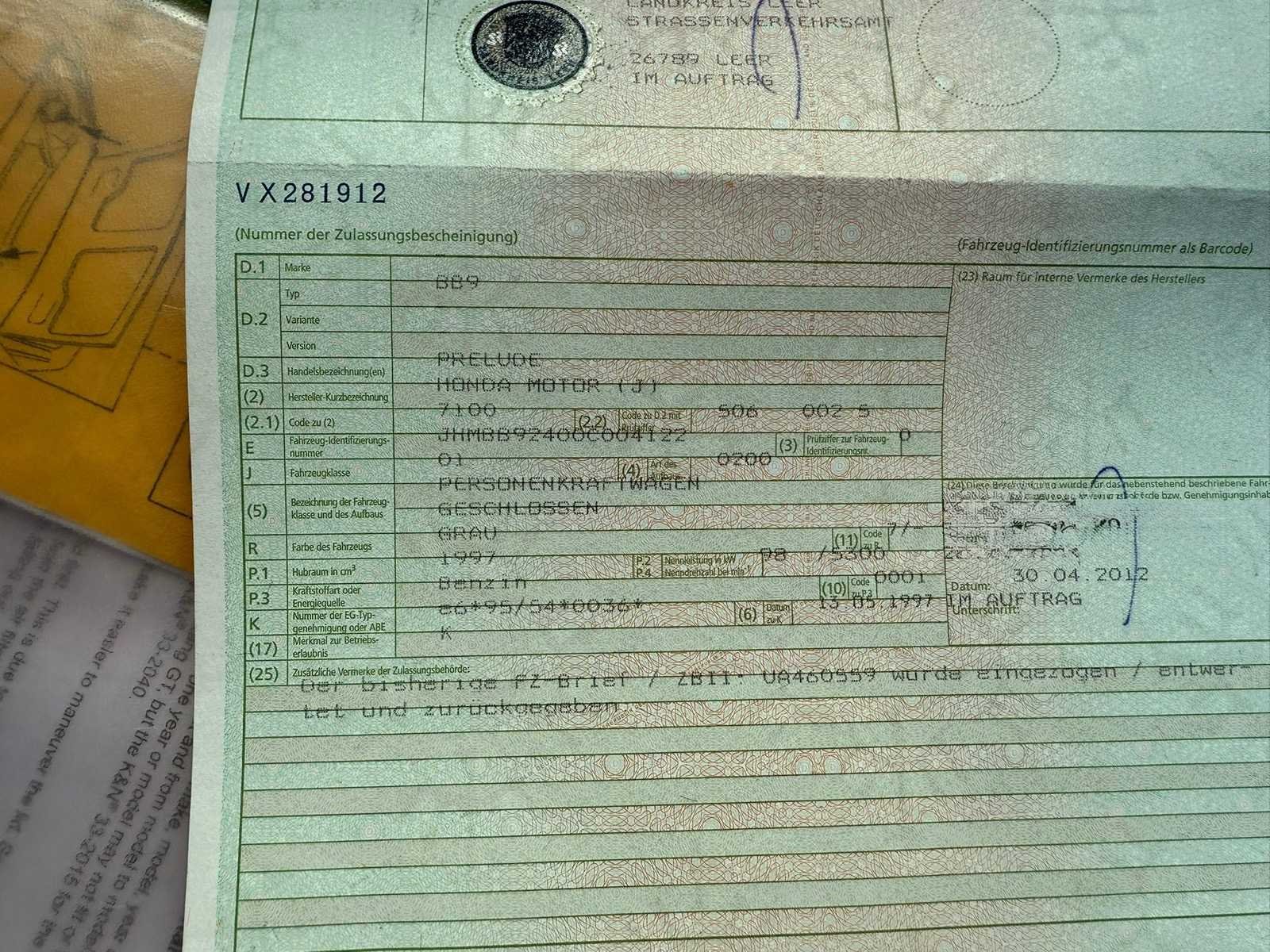 Opgelet, deze auto zal niet worden gekeurd voor verkoop (van toepassing op Belgische particuliere kopers). Nee Merk: Honda Model: Prelude Bouwjaar: 1997 Afgelezen kilometerstand: 258872km Vermogen (kW): 98kW Brandstof: Benzine Chassisnummer: JHMBB92400C004122 Nationaliteit documenten: Duits startinformatie : Start en rijdt Zichtbare schade: Zie foto’s Vavato voert geen technische keuring uit.: true