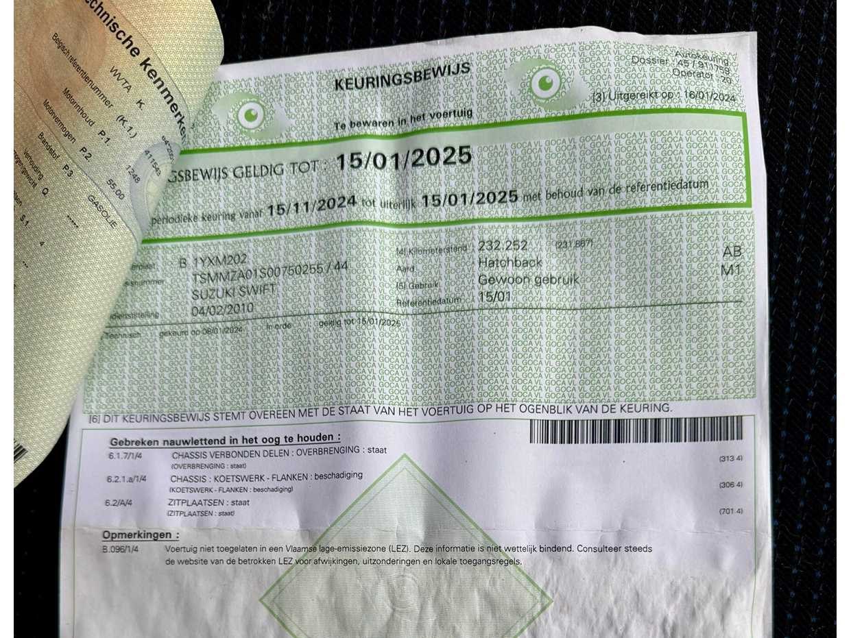 Koppeling kapot (op). Start met booster. Opgelet, deze auto zal niet worden gekeurd voor verkoop (van toepassing op Belgische particuliere kopers). Nee Merk: Suzuki Model: Swift Bouwjaar: 2010 Afgelezen kilometerstand: 248153km Cilinderinhoud: 1248cc Vermogen (kW): 55kW Brandstof: Diesel Chassisnummer: TSMMZA01S00750255 Nationaliteit documenten: Belgisch Start en rijdt: Met booster, koppeling kapot Keuringsrapport geldig tot: 01/2025 startinformatie : Met booster Inschrijvingsbewijs - deel 1 : Aanwezig Inschrijvingsbewijs - deel 2: Aanwezig